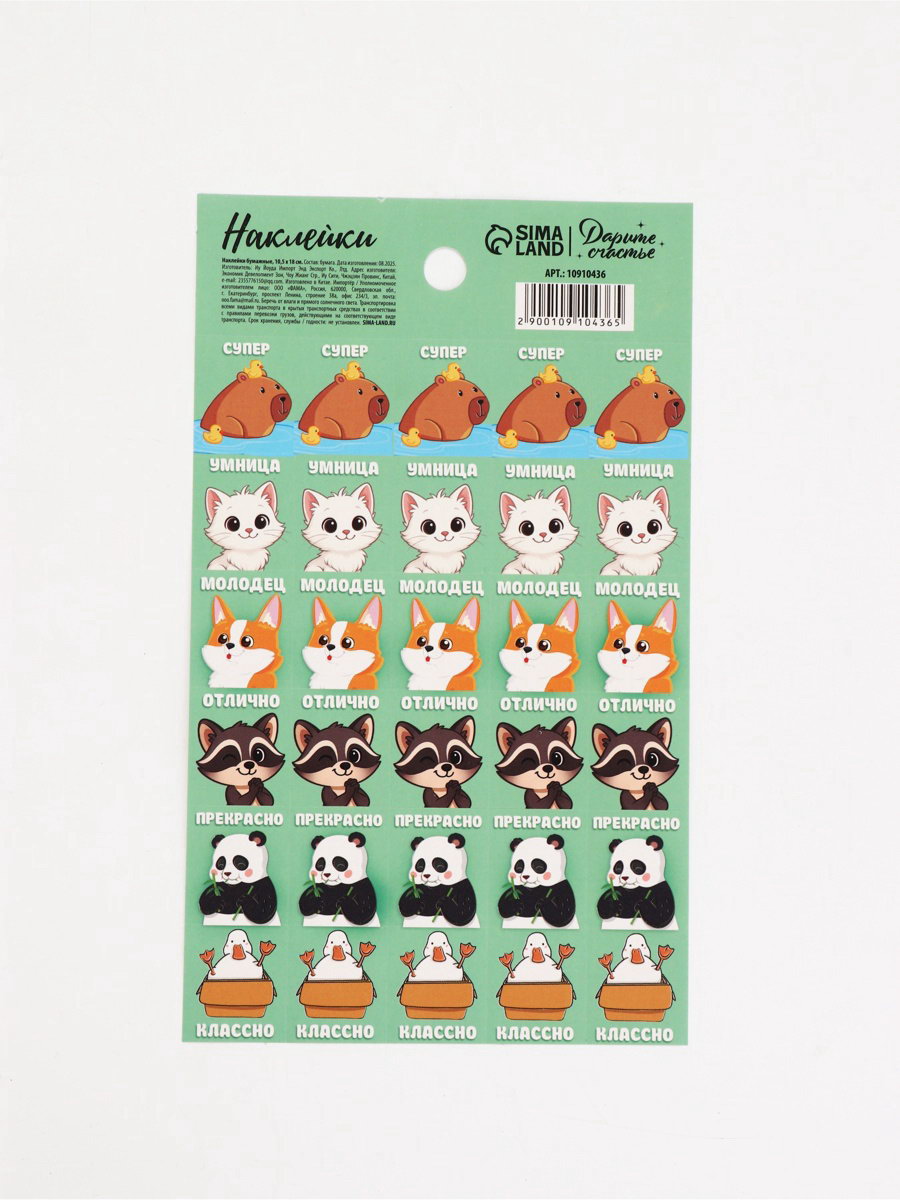 Тематика праздника: 1 Сентября, Универсальная тематика Тематика: Детская, Животный мир Вид наклейки: Бумажная, Наклейка-оценка Размер упаковки: 10.5 x 0.1 x 18 см. tnved: 4911990000 Для кого: Унисекс | ||