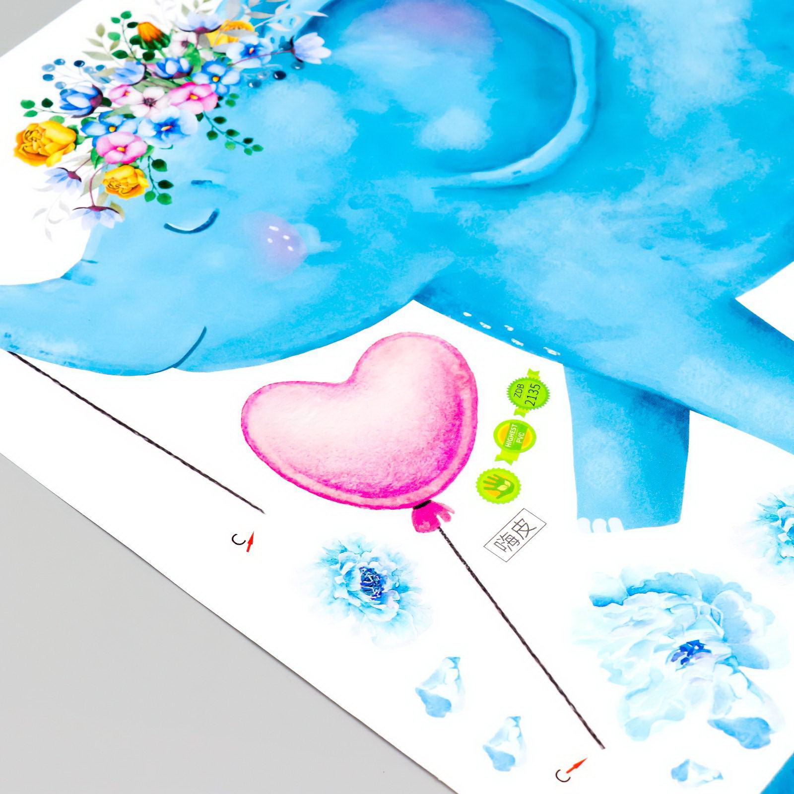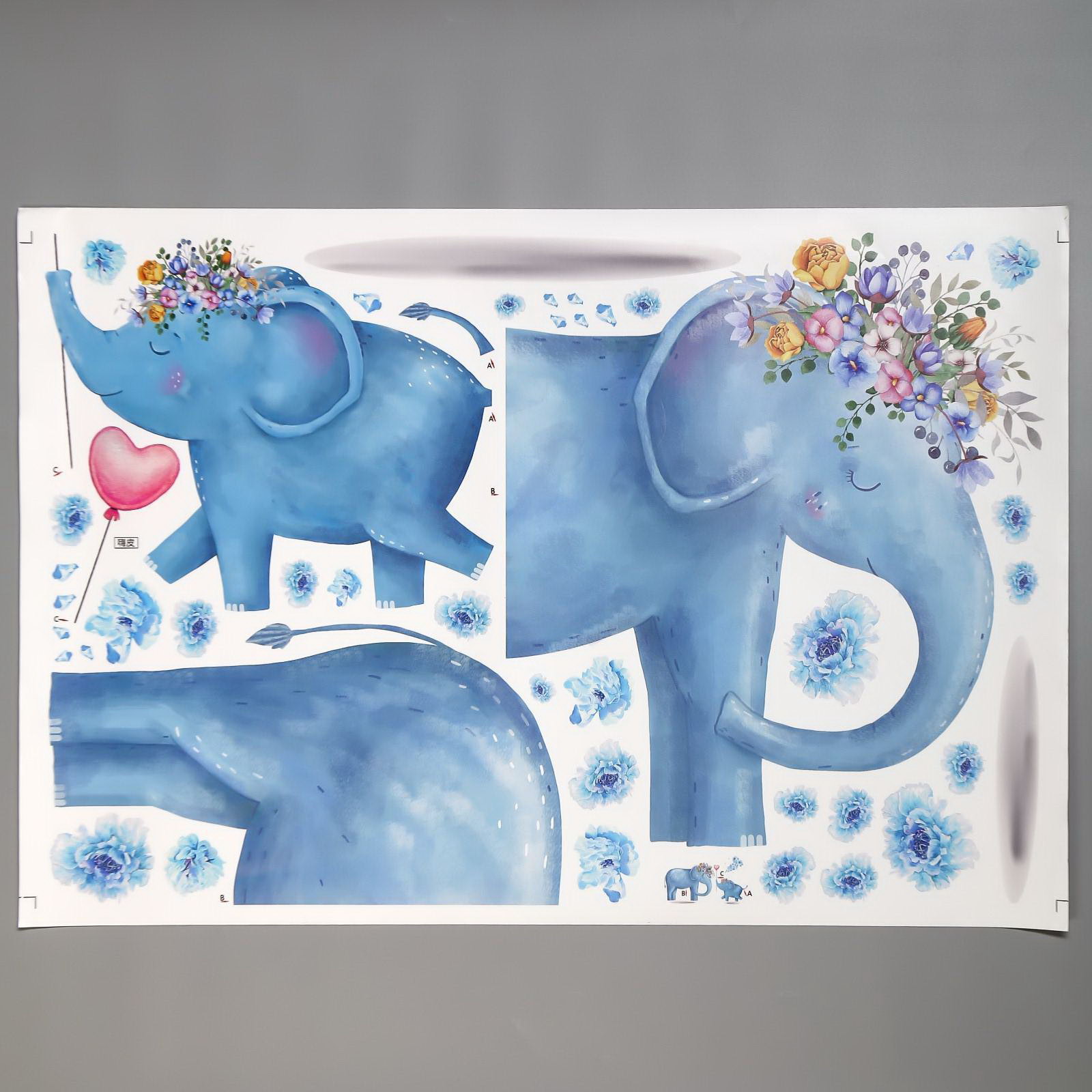 Наклейка пластик интерьерная "Голубые слоны" 60х90 см, 60x90 см., Китай