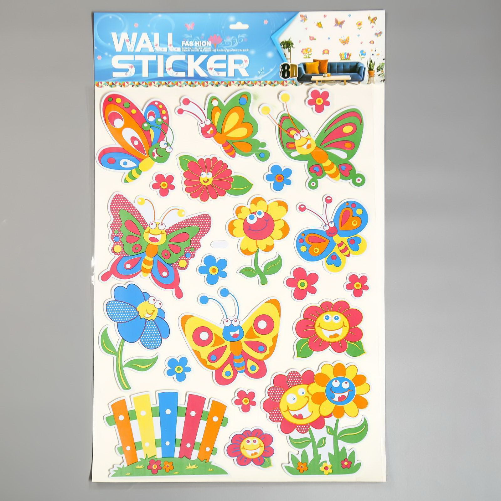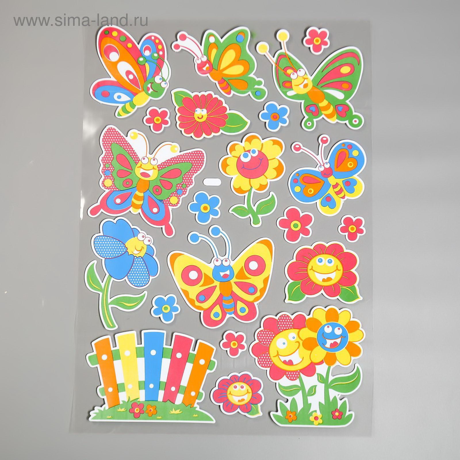 Наклейка EVA "Бабочки и цветочки на полянке" 79х49 см, 49x79 см., Китай