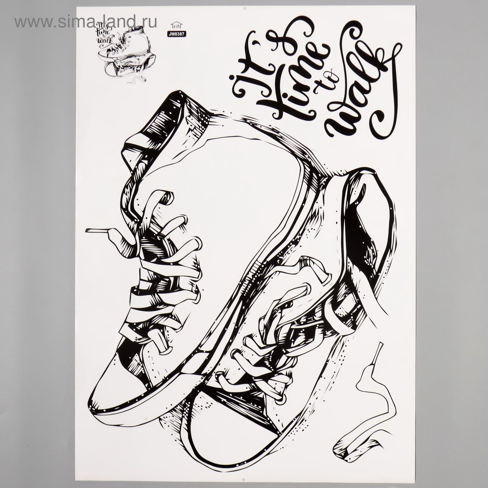 Наклейка пластик интерьерная чёрная "Кеды" 50х70 см, 70x50 см., Китай