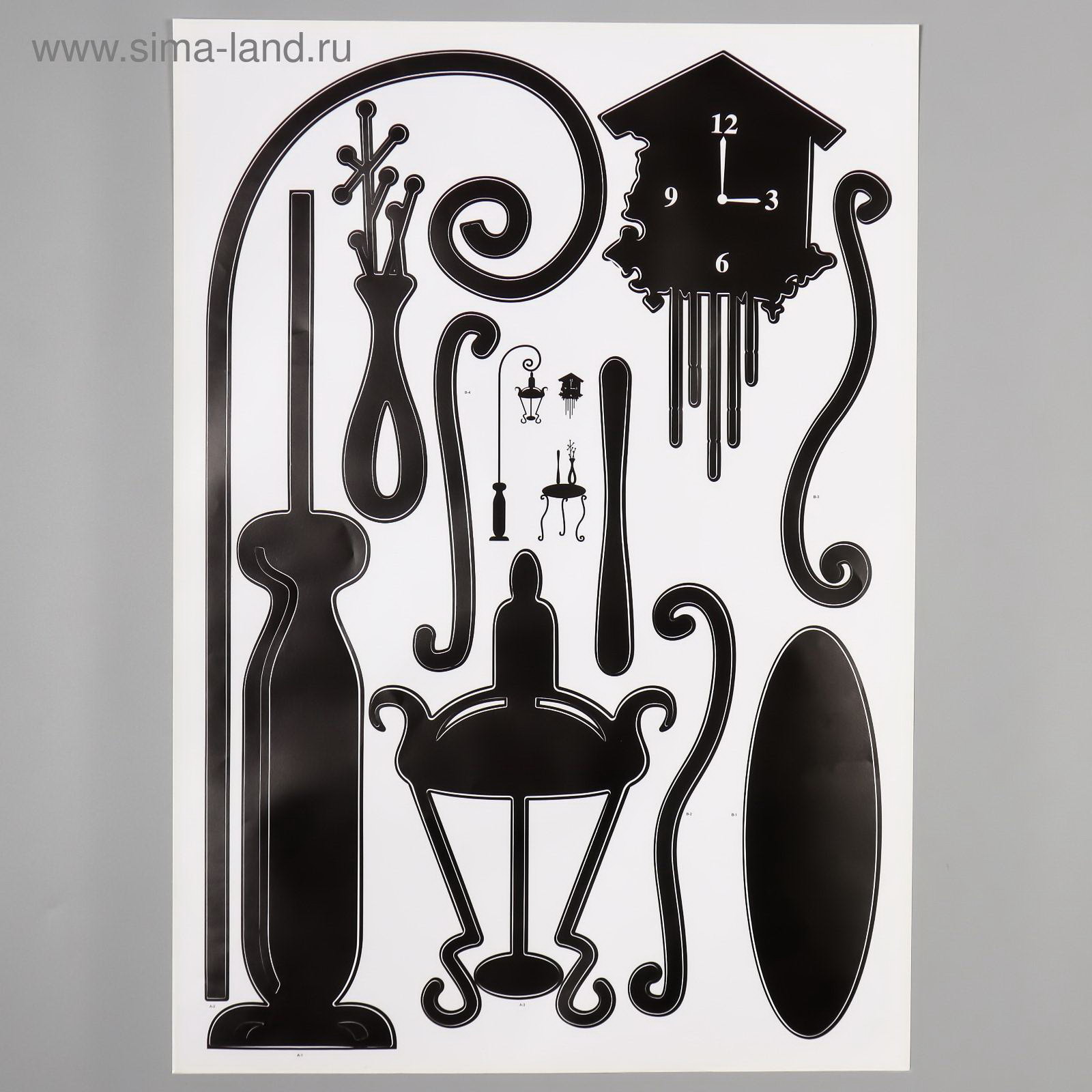 Наклейка интерьерная чёрная "Фонарь, столик и часы", 50x70 см, 70x50 см., Китай