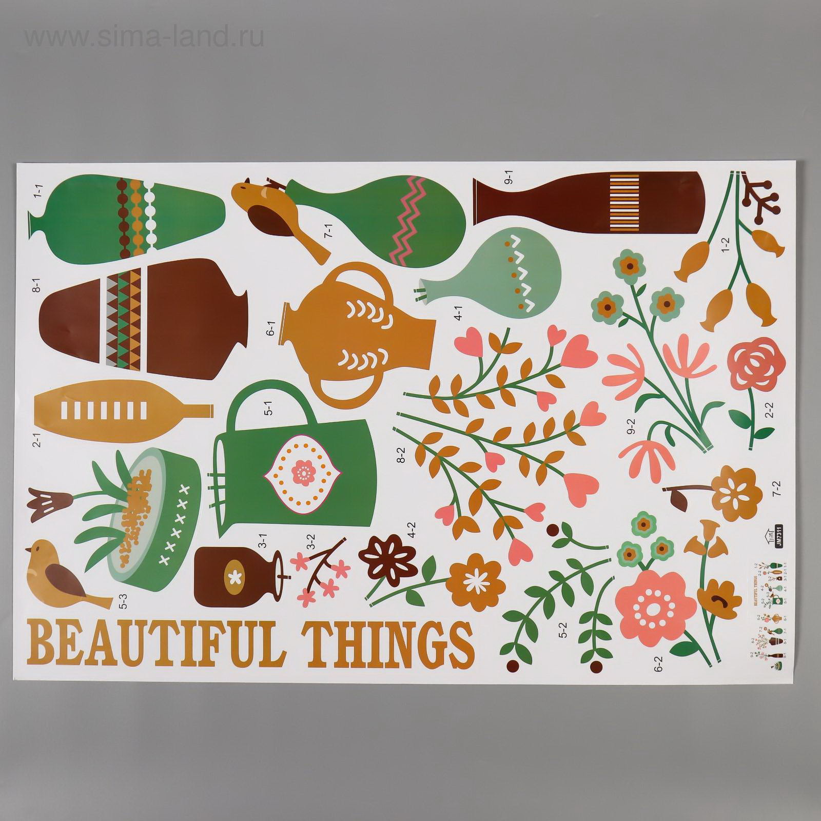 Наклейка пластик интерьерная цветная "Цветы в вазах" 60х90 см, 90x60 см., Китай