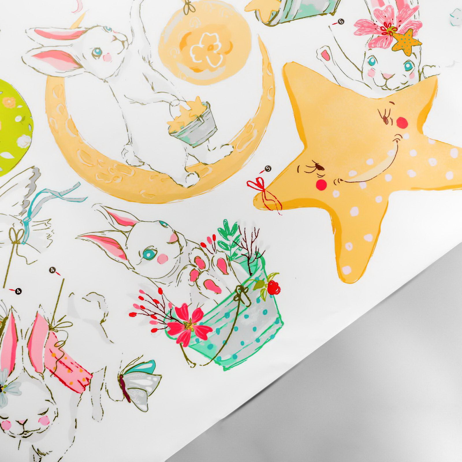 Наклейка интерьерная цветная "Зайки, воздушные шары и звёзды", 60x90 см, 90x60 см., Китай