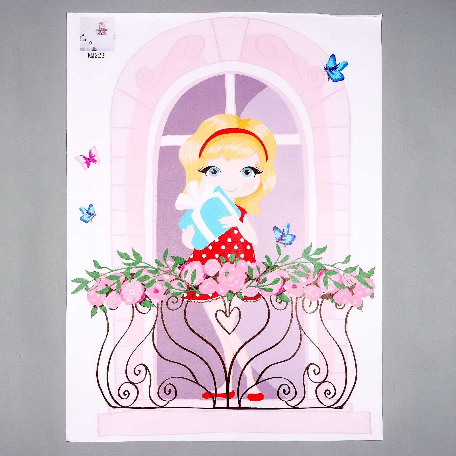 Наклейка интерьерная цветная "Девочка на балконе", пластик, 50x70 см, 70x50 см., Китай