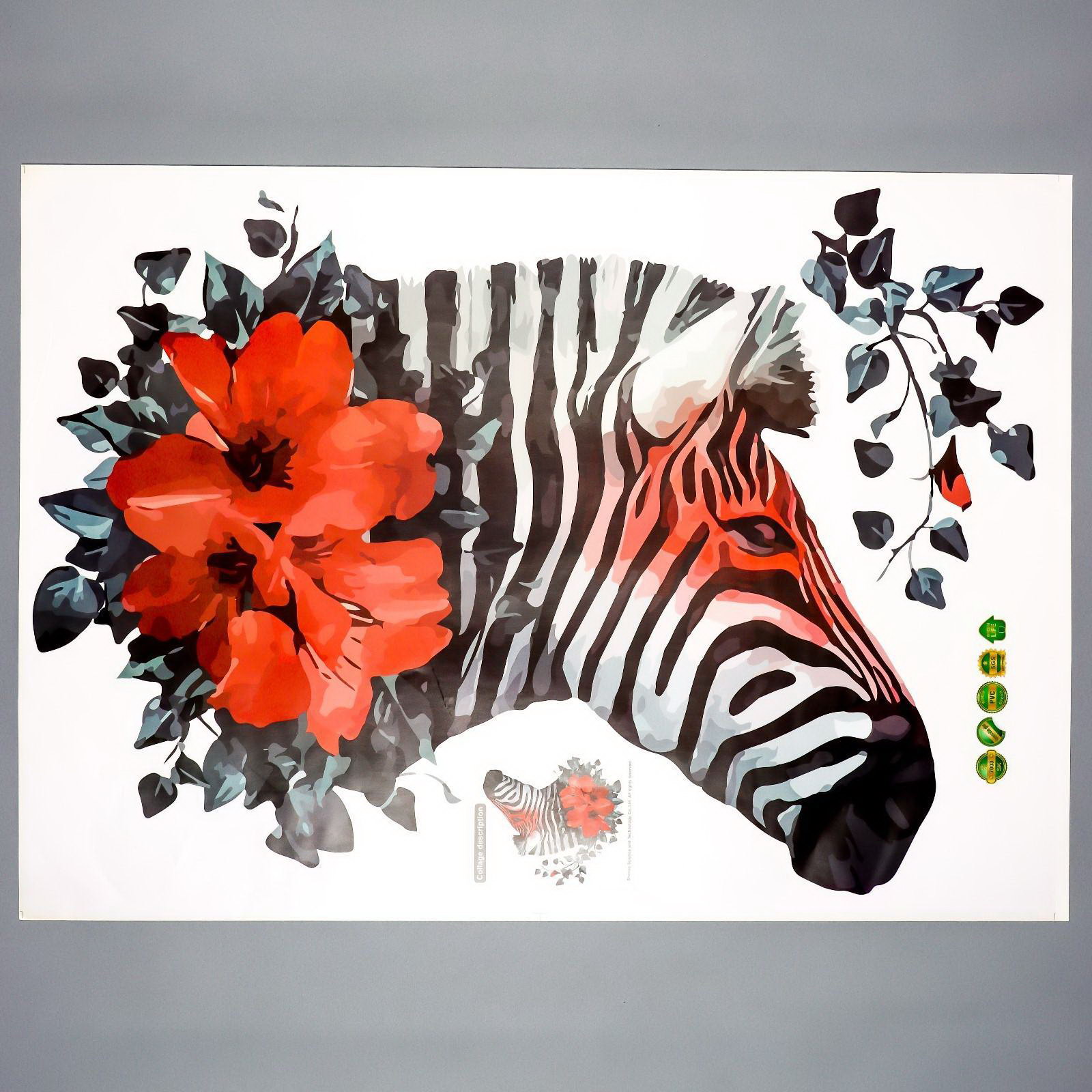 Наклейка интерьерная цветная "Зебра и маки", 50x70 см, 70x50 см., Китай