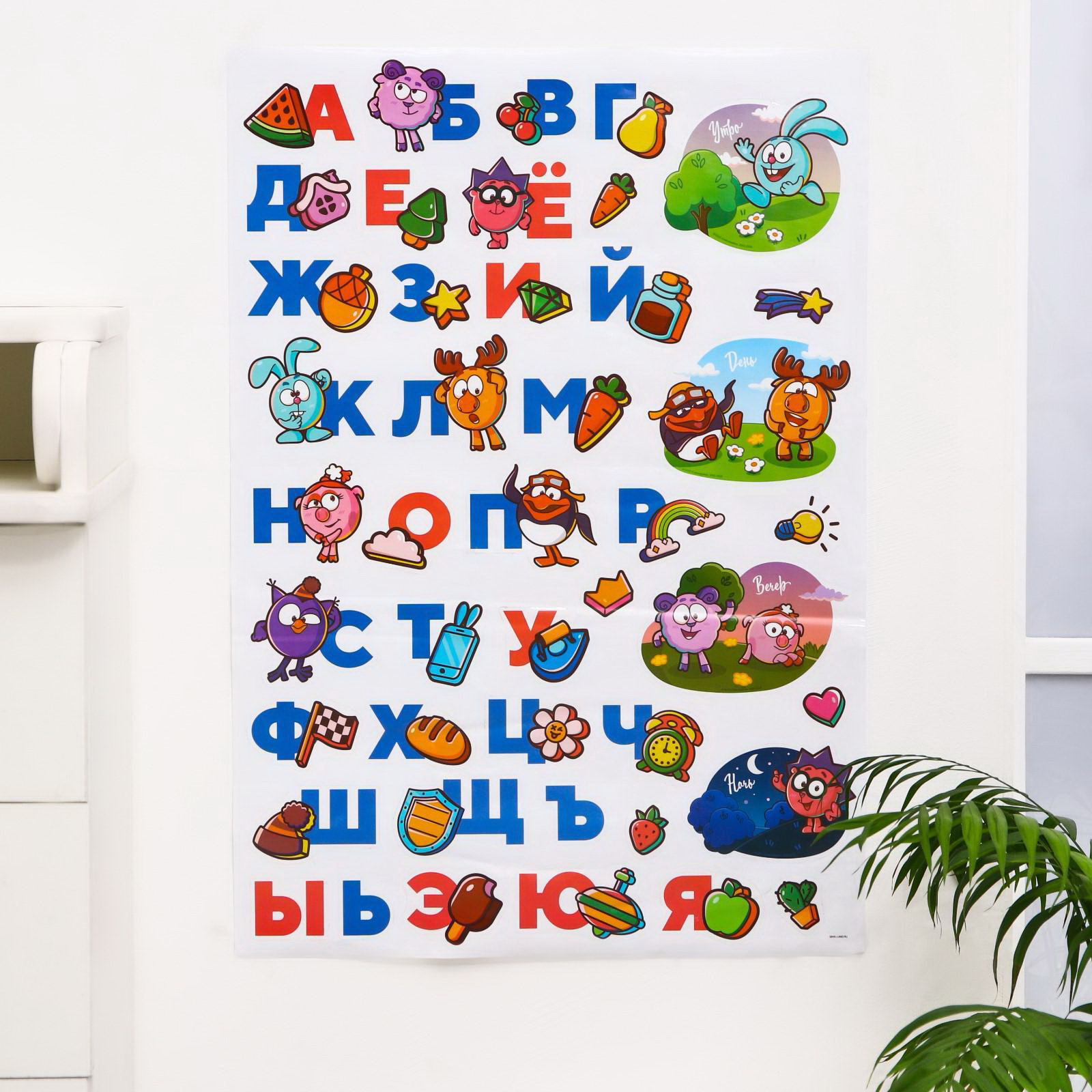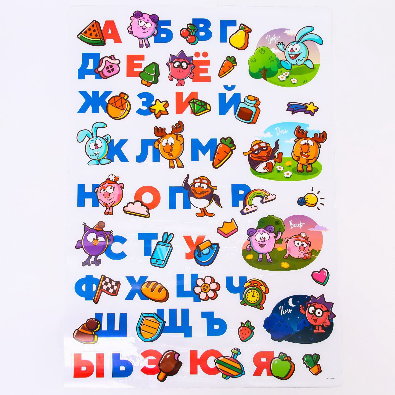 Наклейка - алфавит, 0.1x50x72 см., Смешарики, Китай