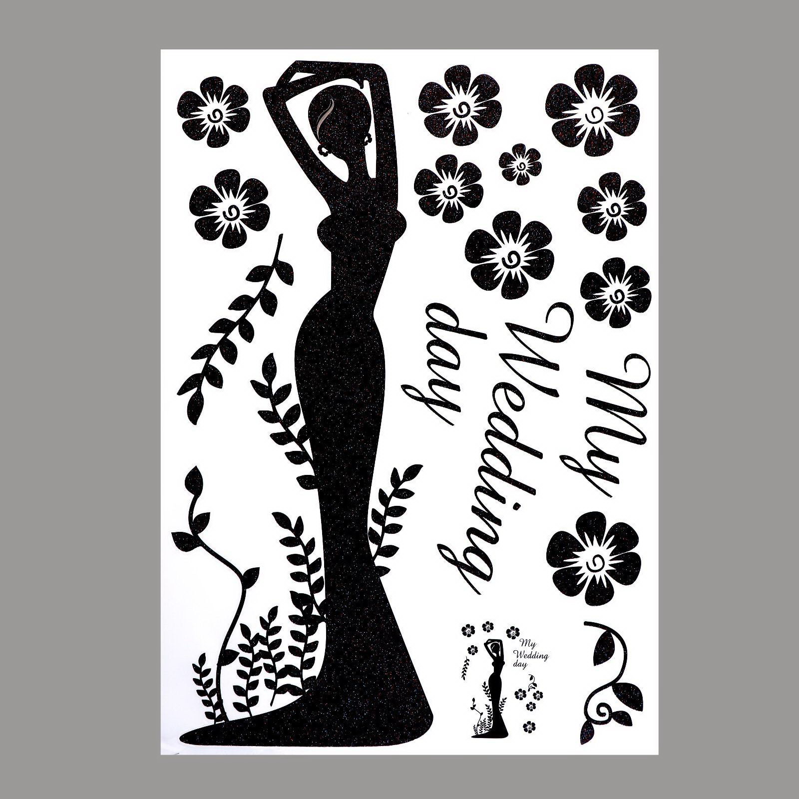 Наклейка интерьерная чёрная "Девушка в вечернем платье", блёстки, 50x70 см, 50x70 см., Китай
