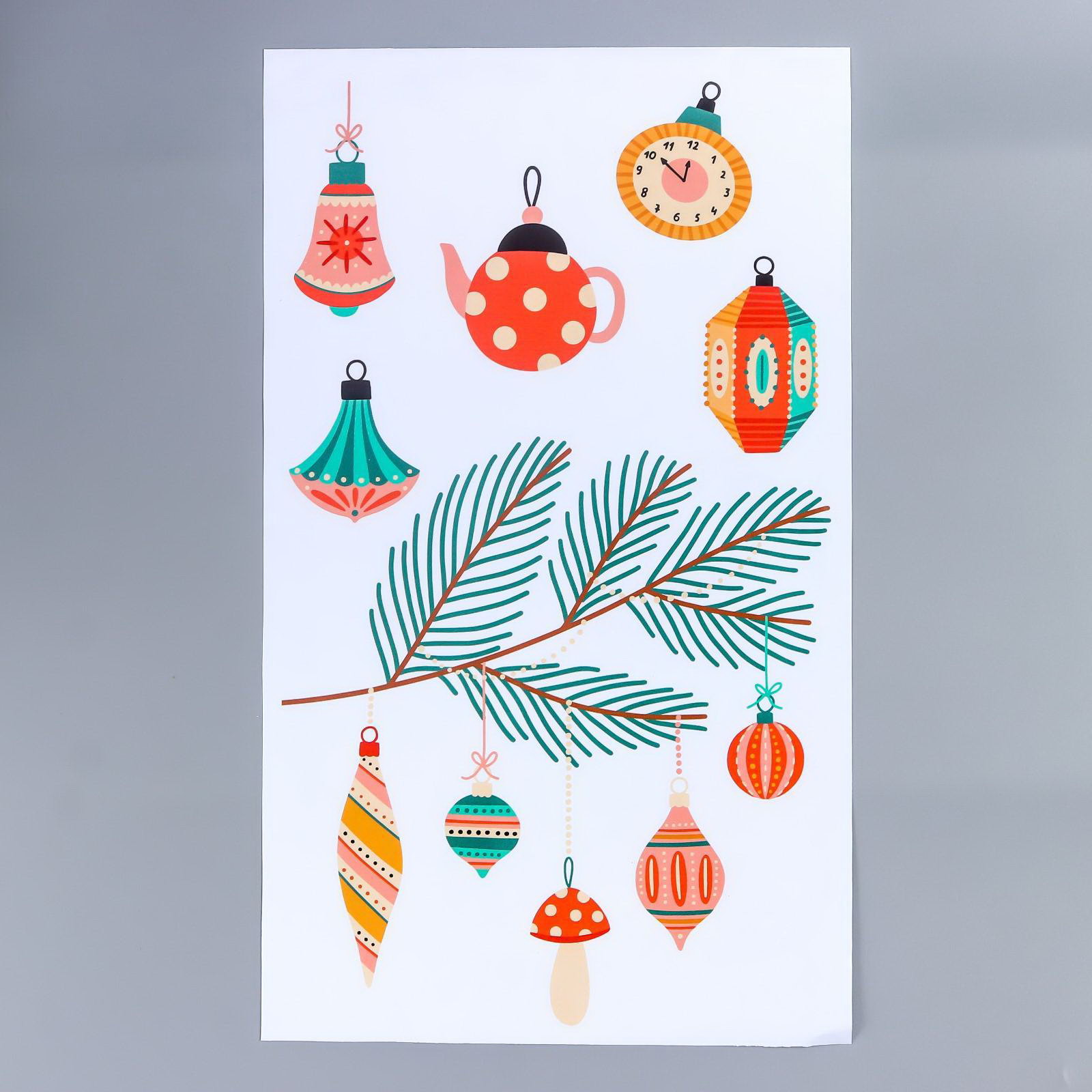 Интерьерная наклейка новогодняя "Ёлочные игрушки", прозрачный фон, 30x50 см, Divino, Россия
