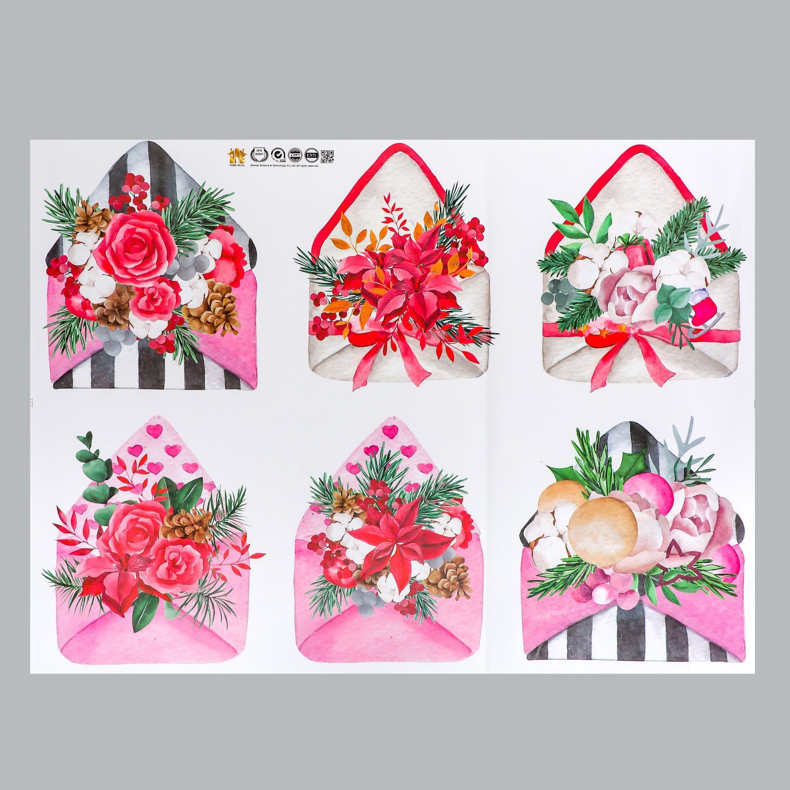 Наклейка пластик интерьерная цветная "Цветочные конвертики" 60х80 см, 80x60 см., Китай