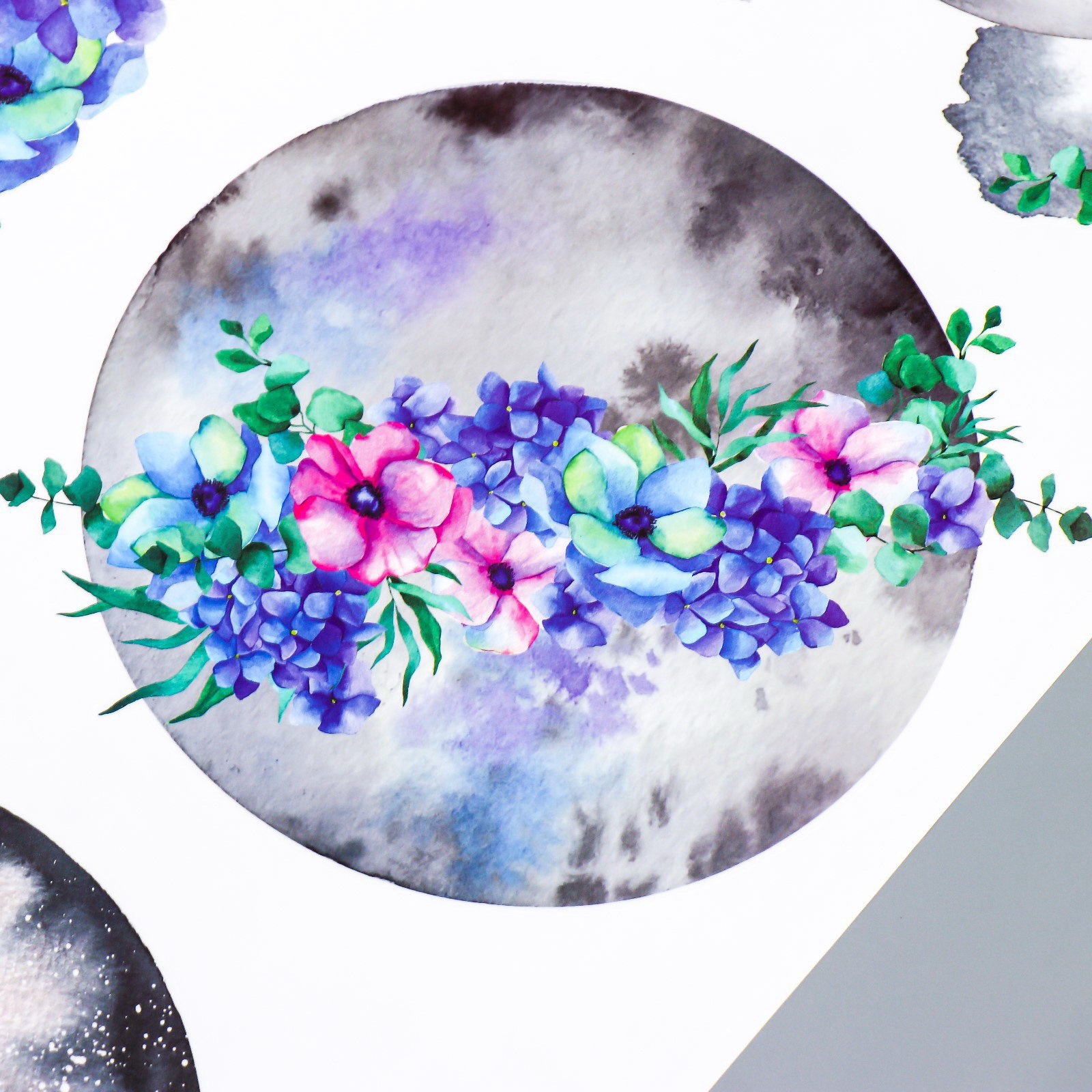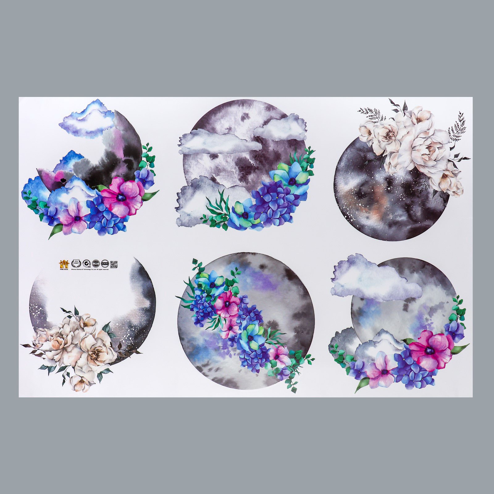 Наклейка интерьерная цветная "Луна и цветы", 60x90 см, 90x60 см., Китай