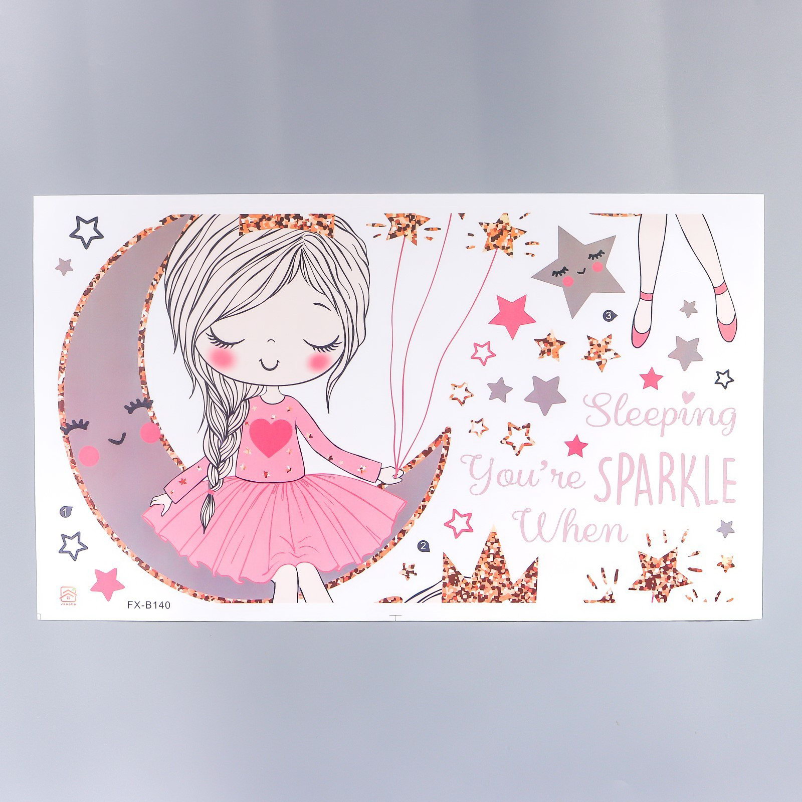Наклейка пластик интерьерная цветная "Принцесса на месяце" 30х60 см, 60x30 см., Китай