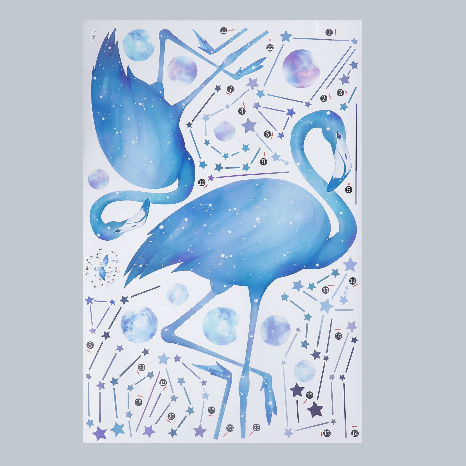 Наклейка пластик интерьерная цветная "Звёздные фламинго", Китай