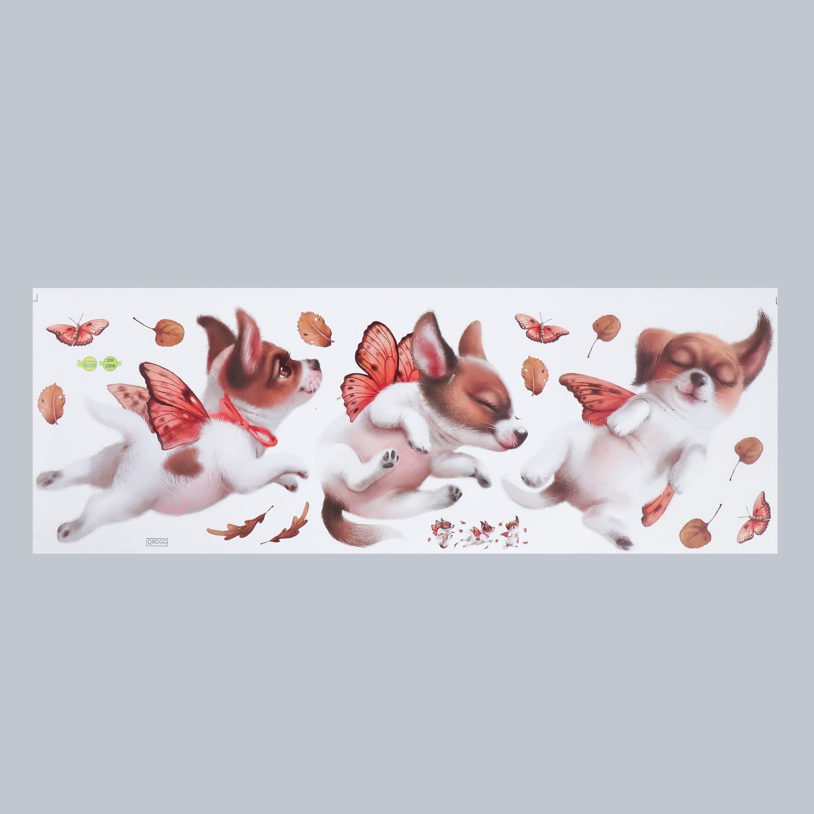 Наклейка интерьерная цветная "Пёсики с крыльями бабочек", 30x83 см, 90x30 см., Китай