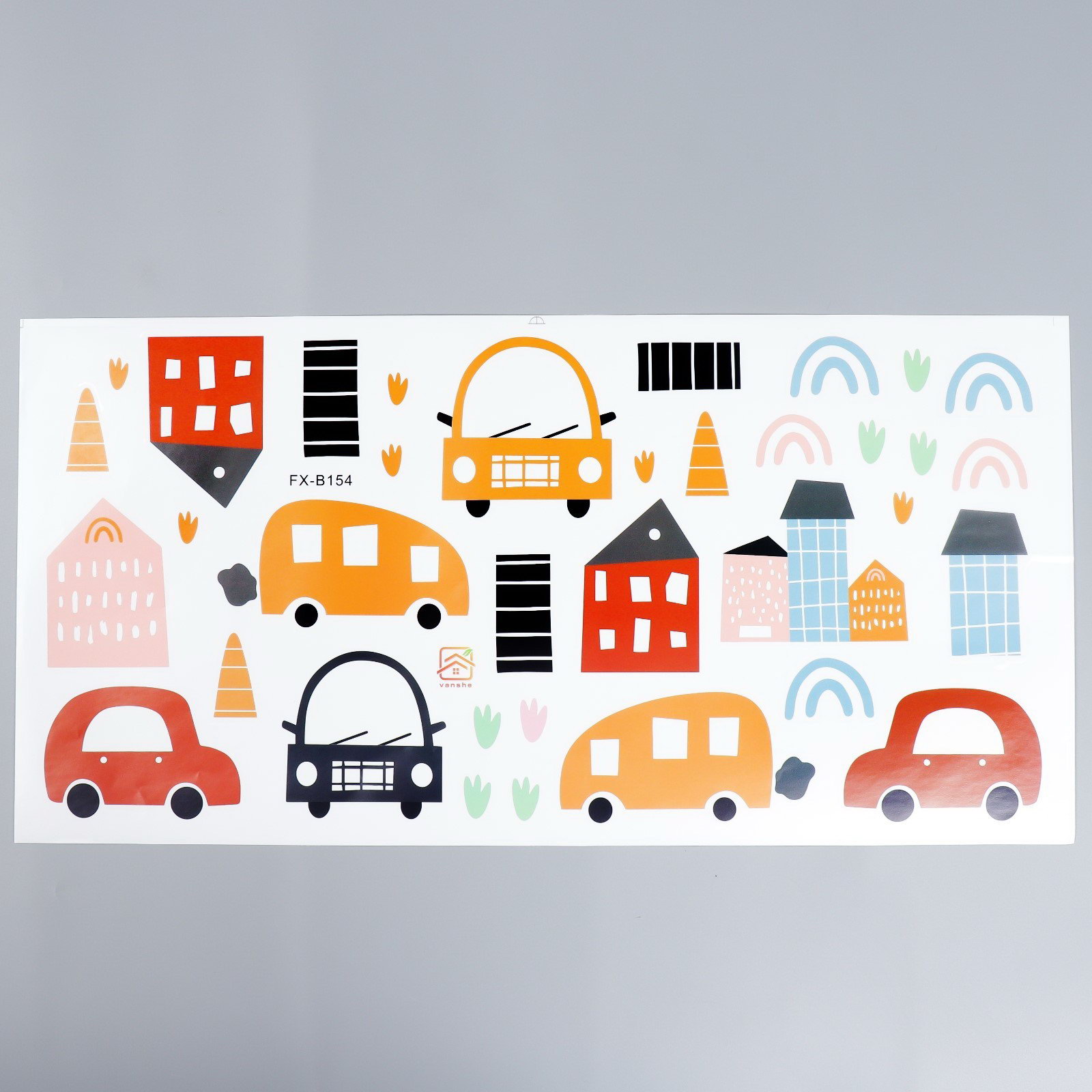 Наклейка интерьерная цветная "Автомобили в мегаполисе", 30x60 см, 60x30 см., Китай
