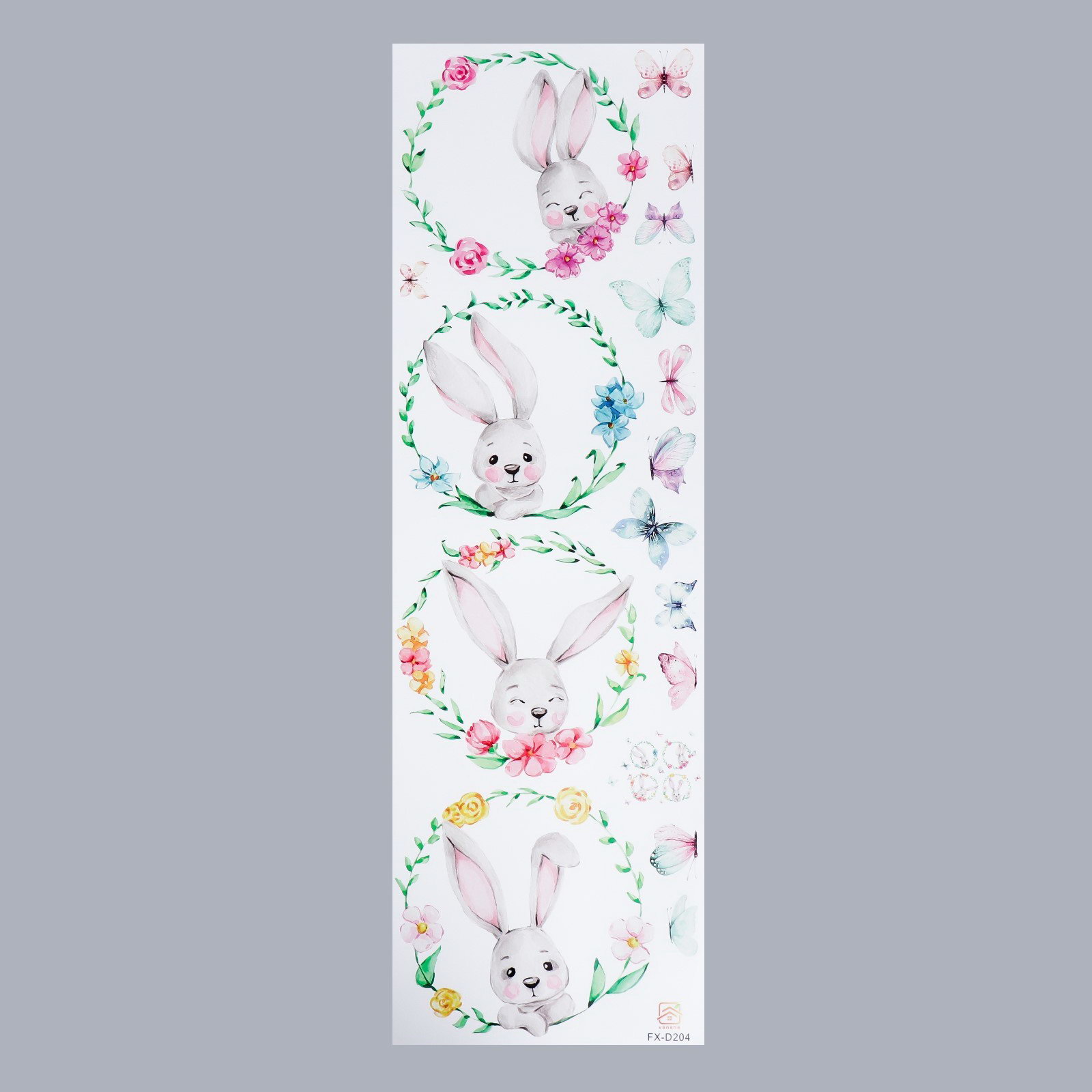 Наклейка интерьерная цветная "Зайчики в цветочных веночках", 30x90 см, 90x30 см., Китай