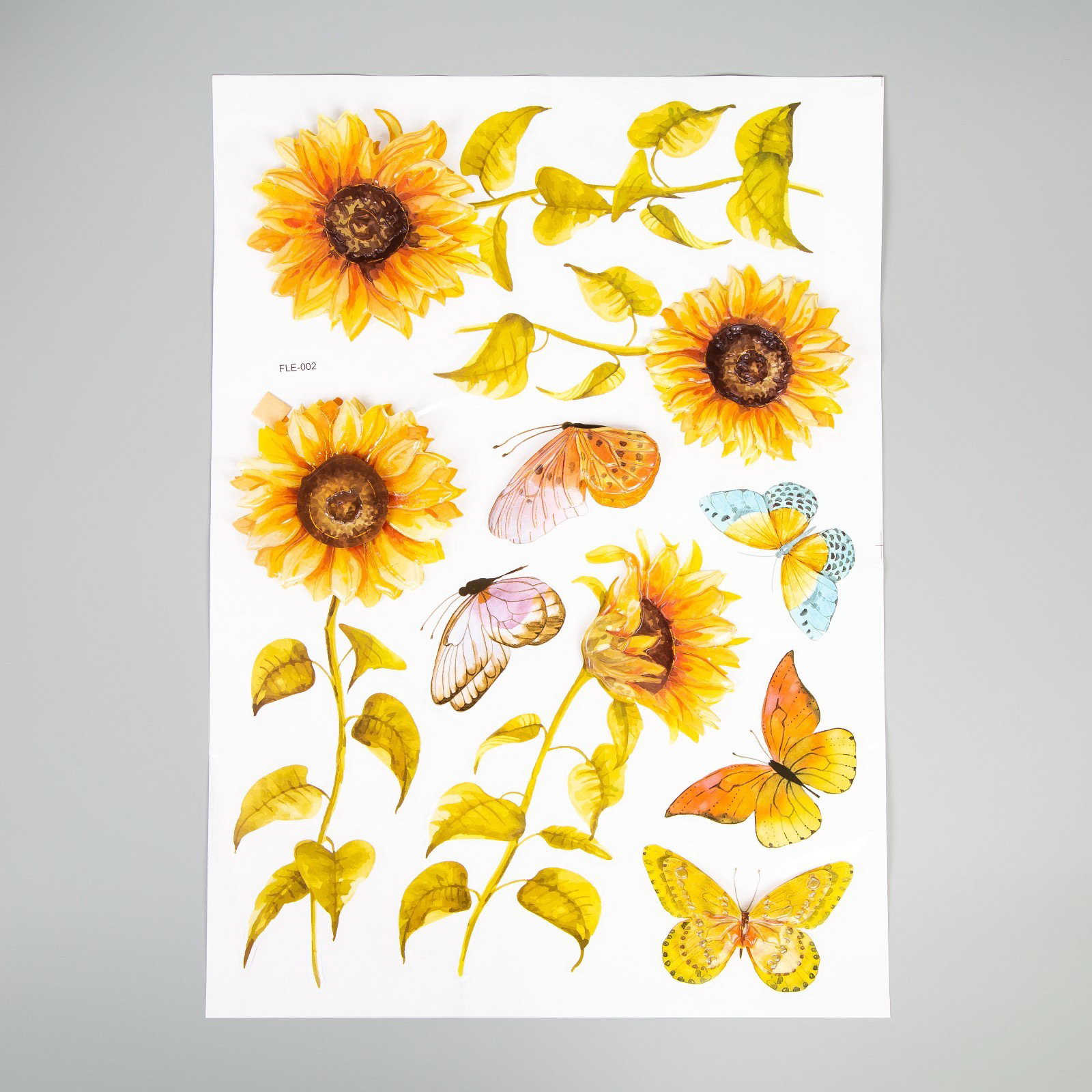 Наклейка интерьерная 3D "Подсолнухи", 50x35 см, 34.5x60 см., Китай
