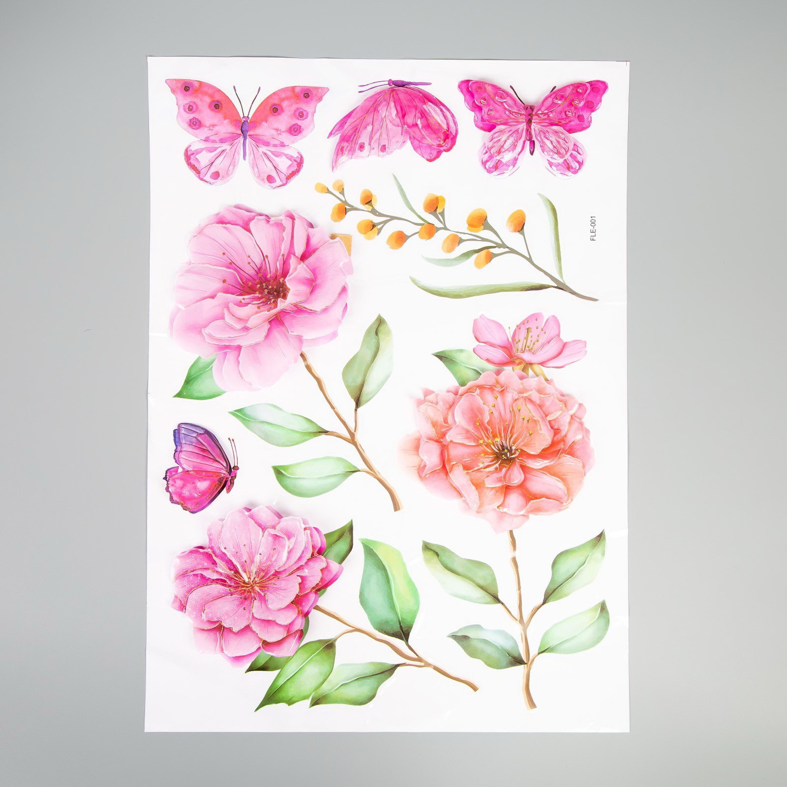 Наклейка пластик интерьерная 3D "Розовые пионы" 50х35 см, 34.5x60 см., Китай