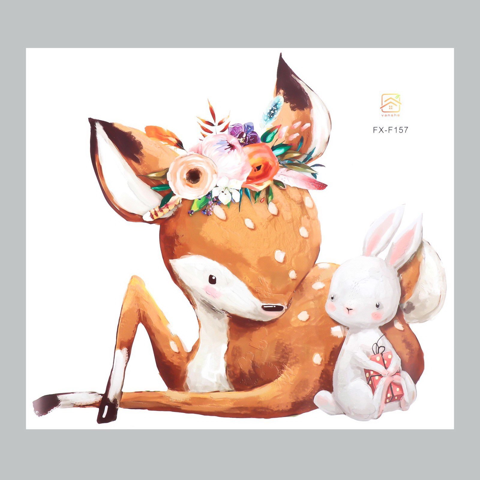 Наклейка интерьерная цветная "Оленёнок с зайчиком", 39x44 см, 44x39 см., Китай