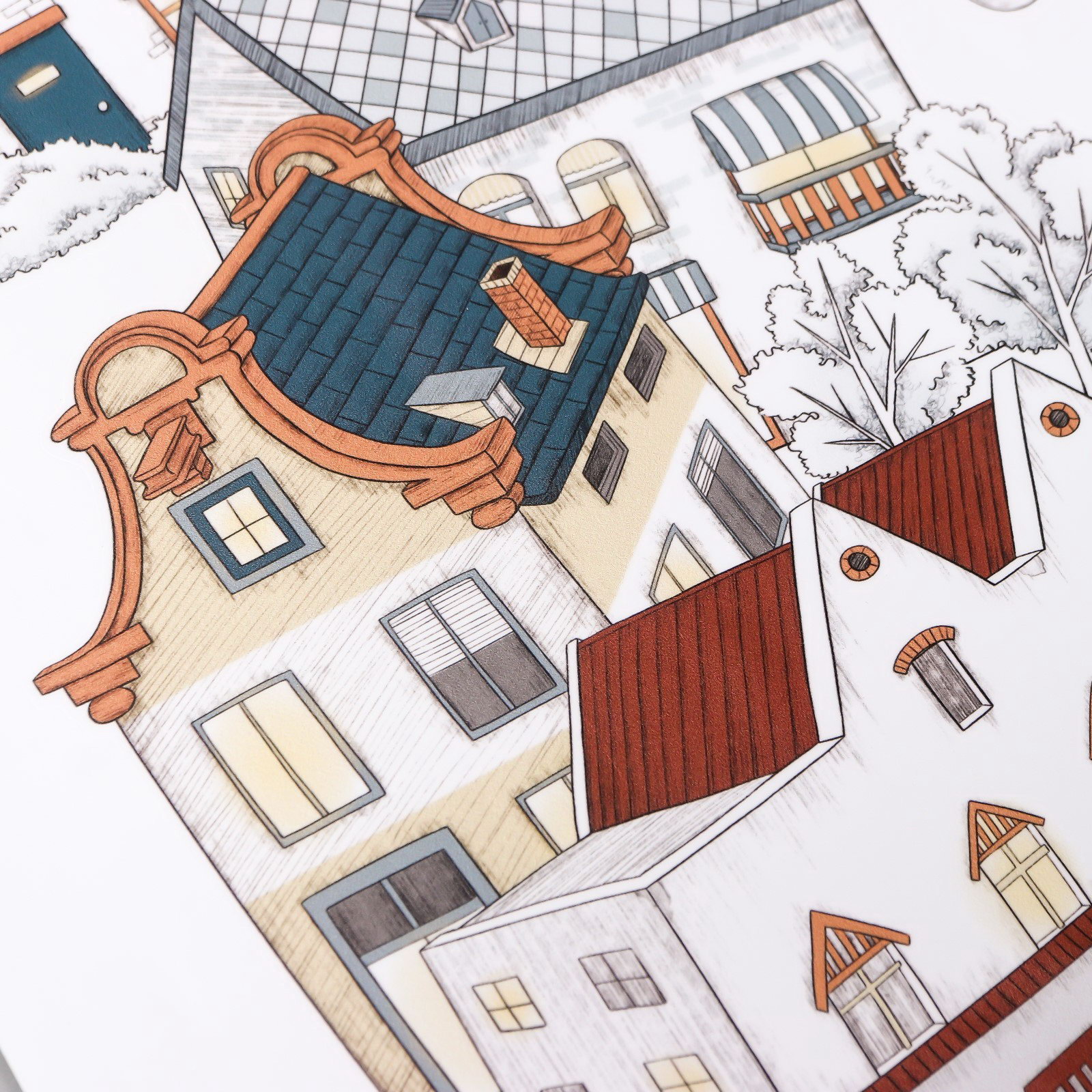 Наклейка пластик интерьерная цветная "Малышка в лодке на домиках" 30х45 см, 45x30 см., Китай