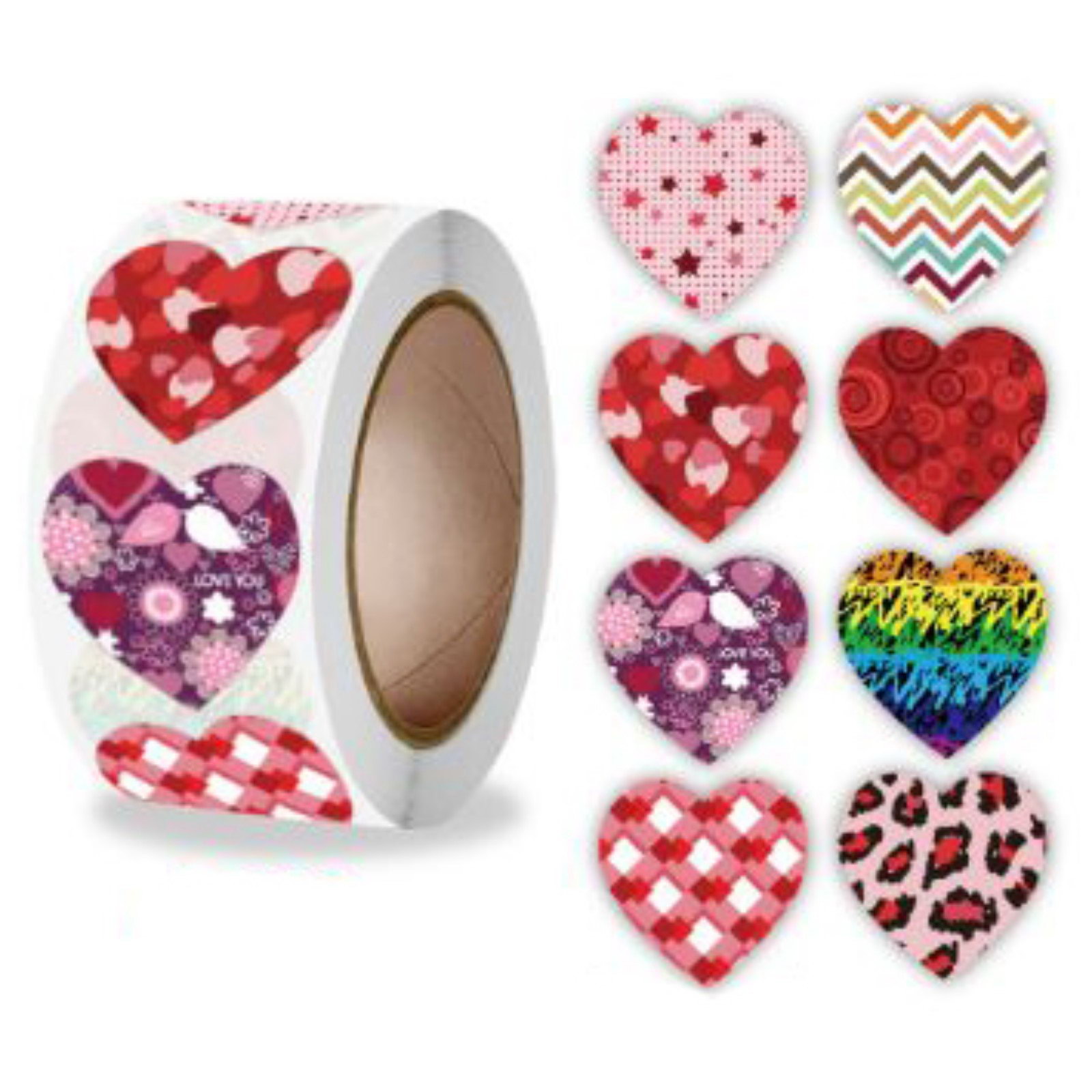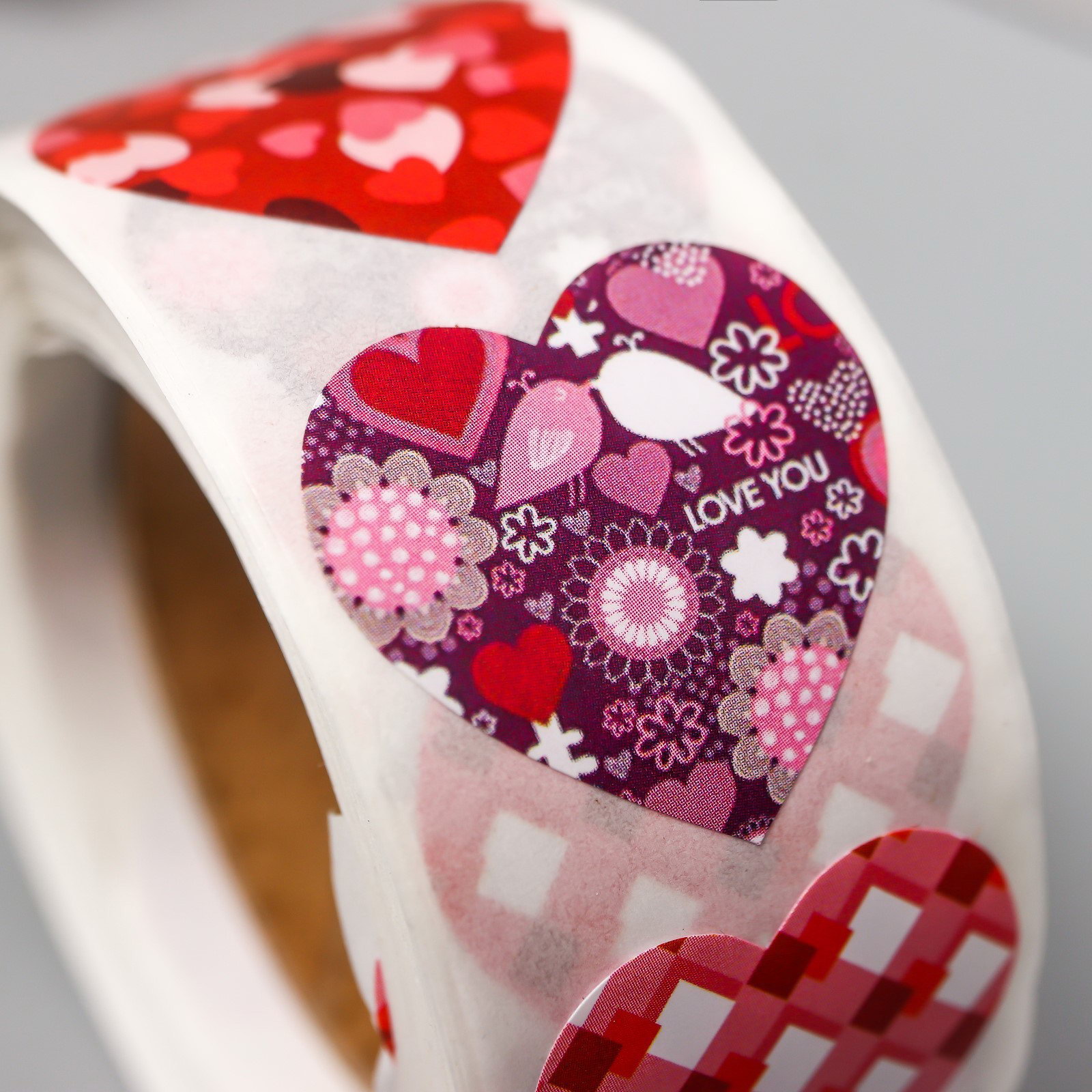 Наклейка бумага "Разные сердечки", d=2.5 см, 500 шт. в рулоне, 3x6.5x6.5 см, 6.5x6.5x3 см., Китай