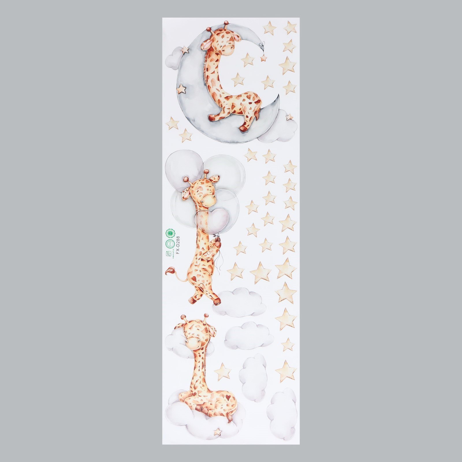 Наклейка интерьерная цветная "Спящие малыши жирафики", 30x90 см, 90x30 см., Китай