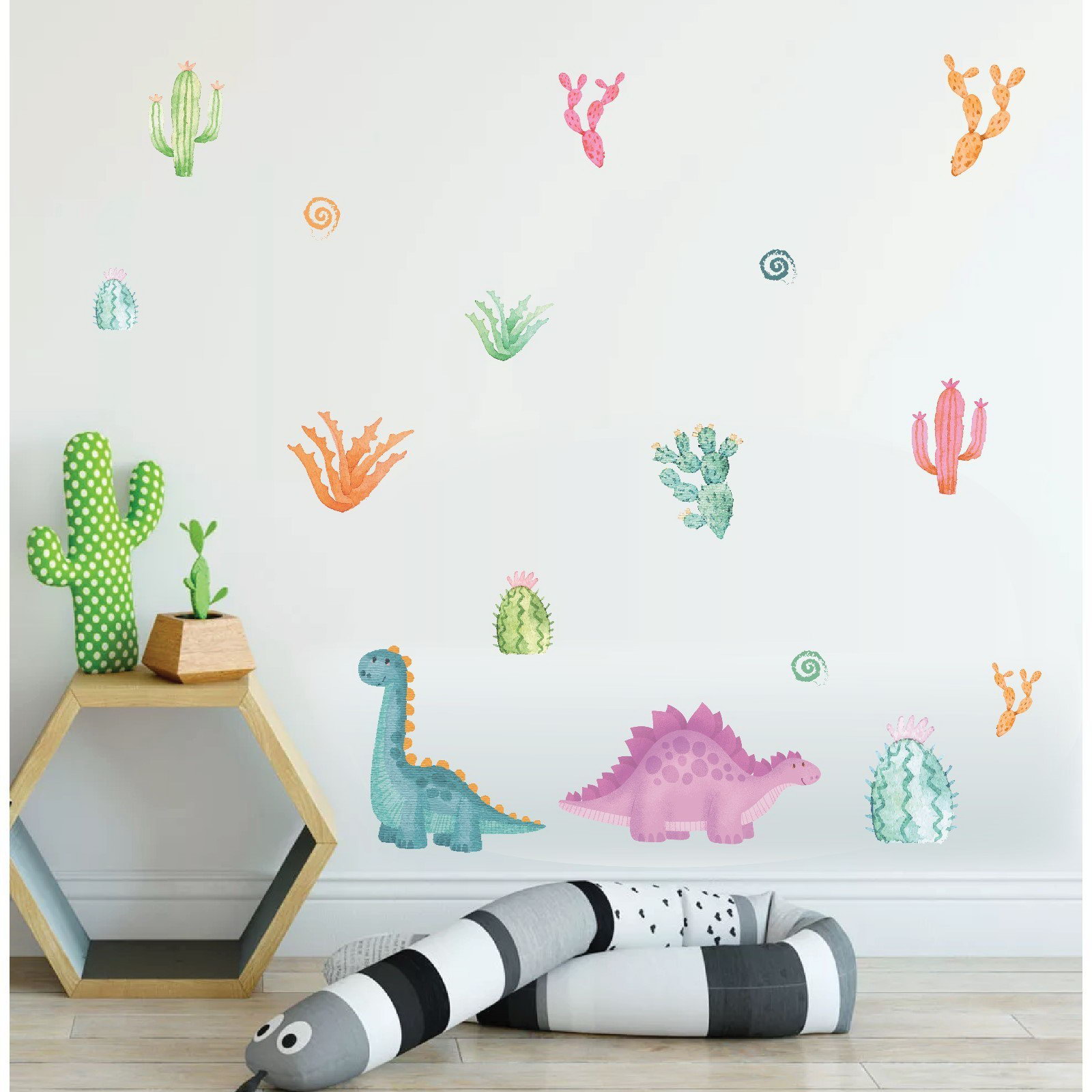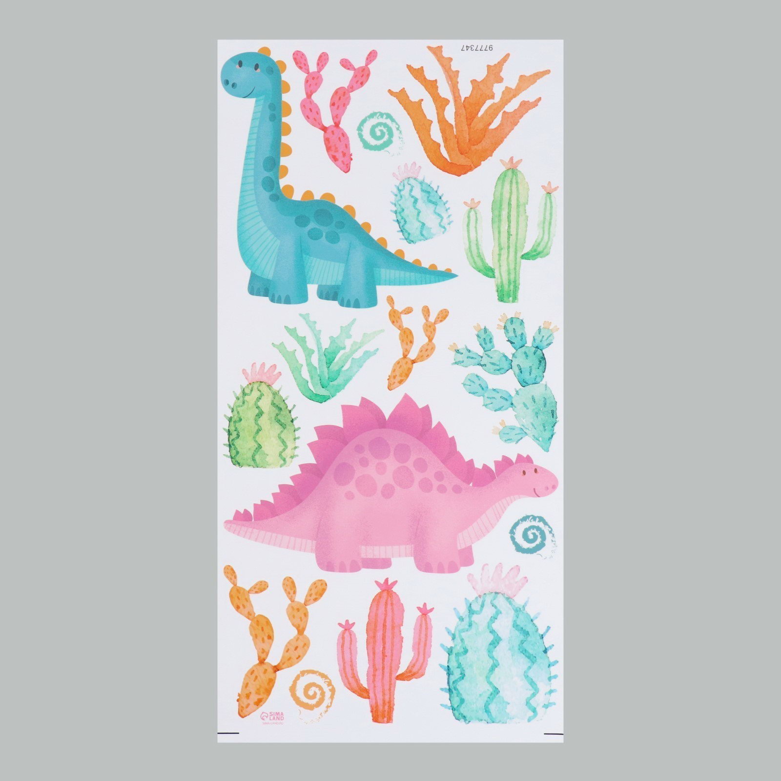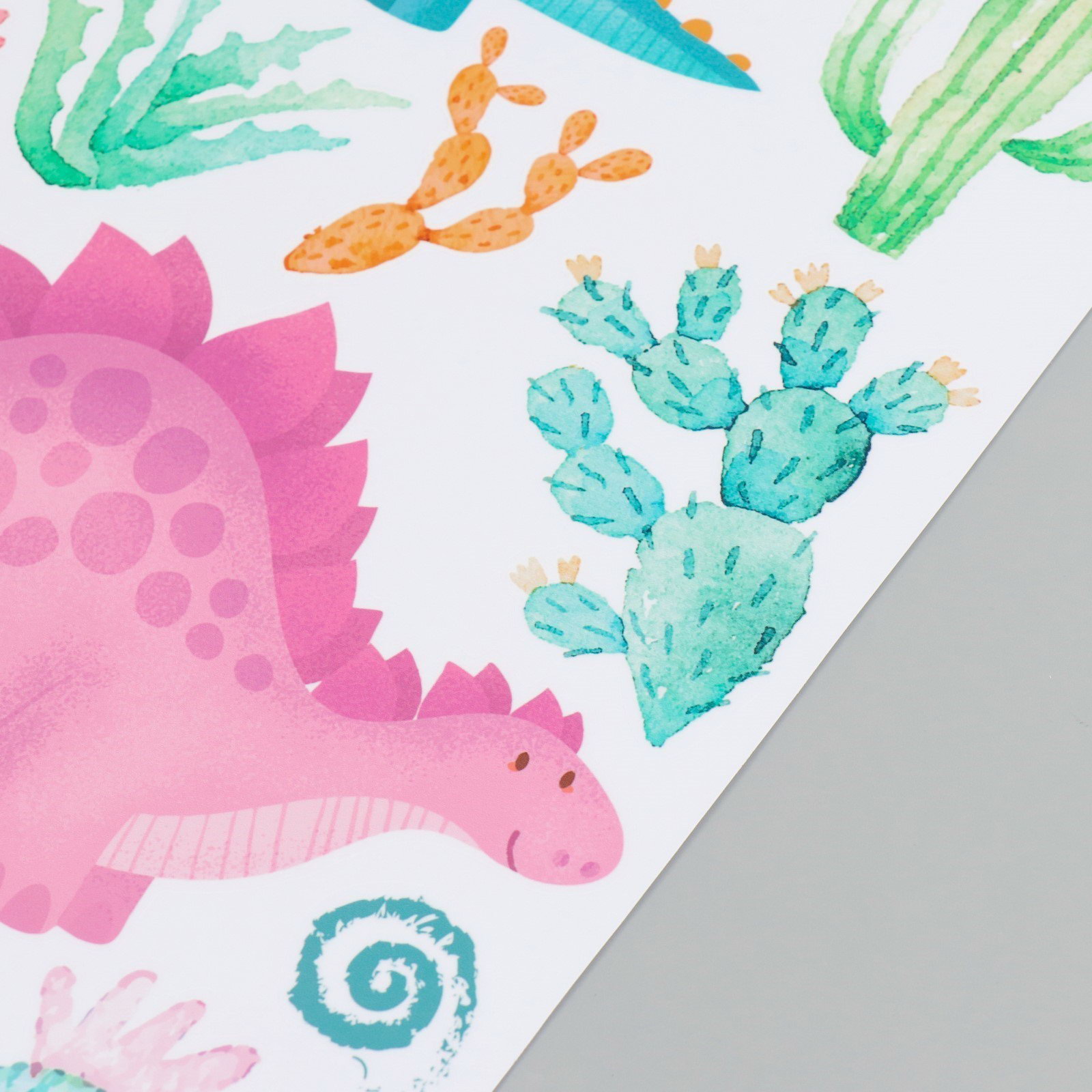 Наклейка интерьерная цветная "Динозаврики в кактусах", 30x60 см, 60x30 см., Арт Узор, Китай