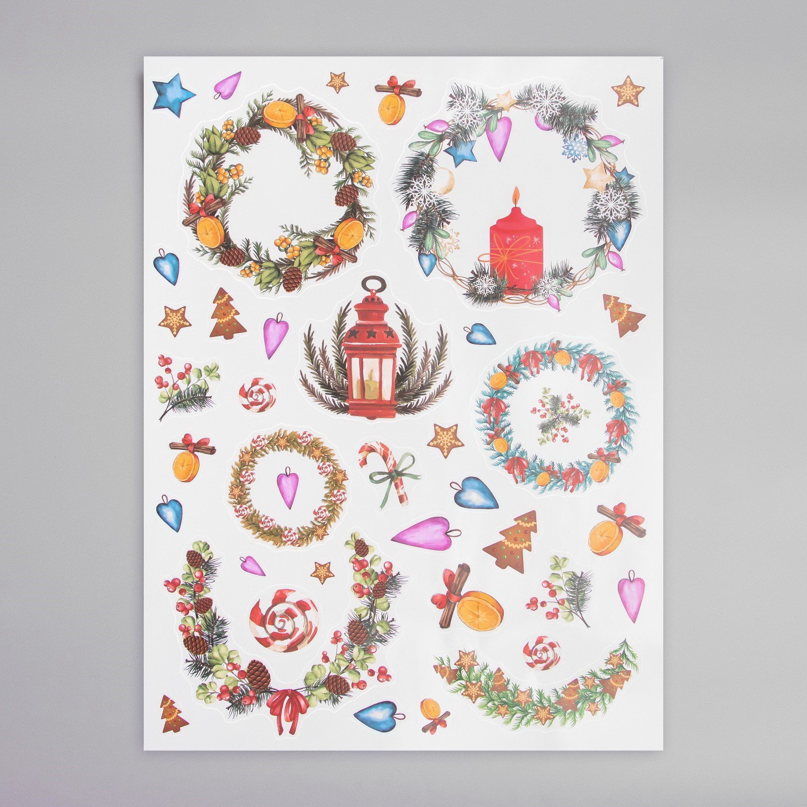 Наклейка интерьерная цветная "Новогодние веночки", 30x40 см, 30x40 см., Арт Узор, Китай