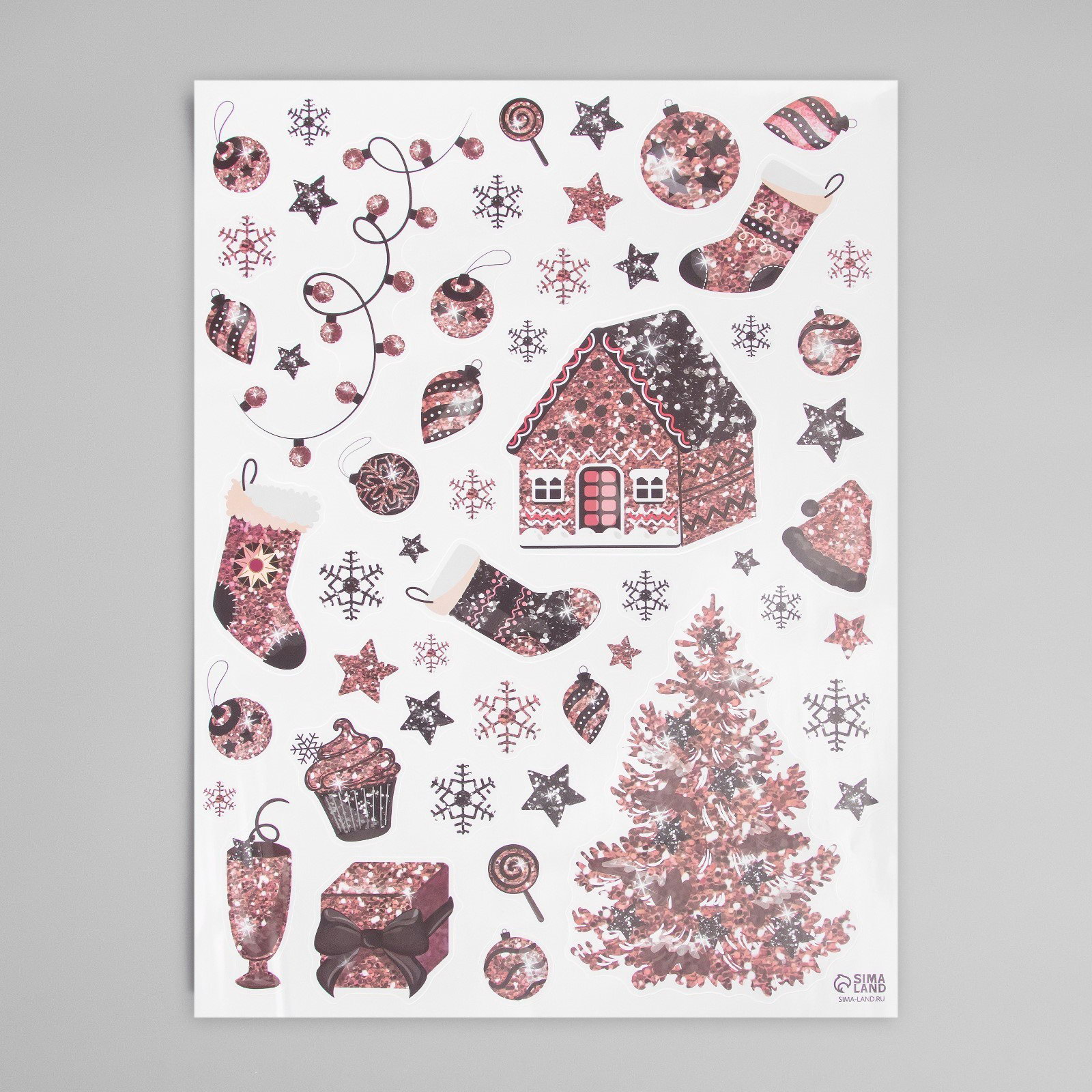 Наклейка интерьерная цветная "Розовая ёлка", 30x40 см, 30x40 см., Арт Узор, Китай