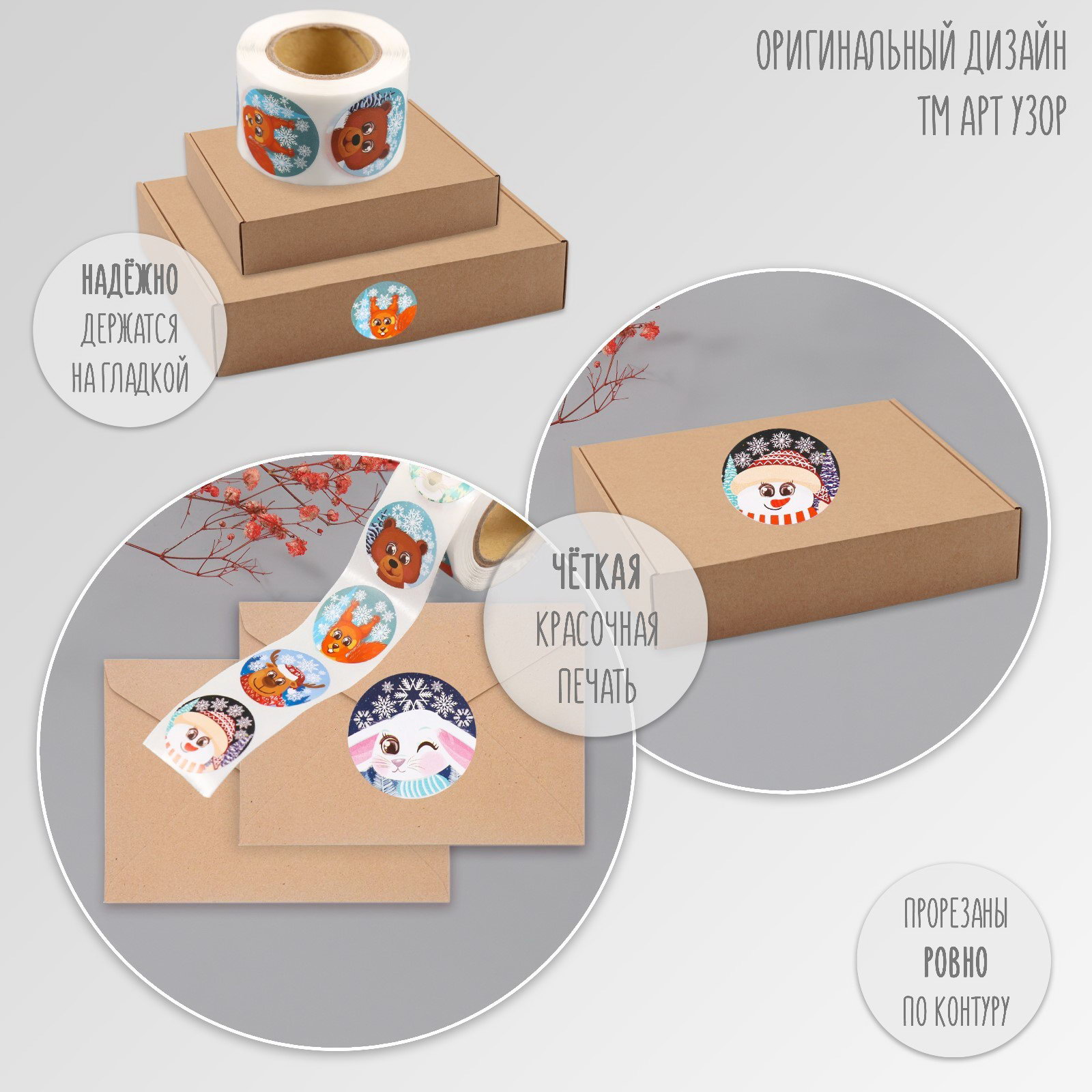 Наклейка бумага "Снеговик и зверята", d=2.5 см, 252 шт. в рулоне, Арт Узор, Китай