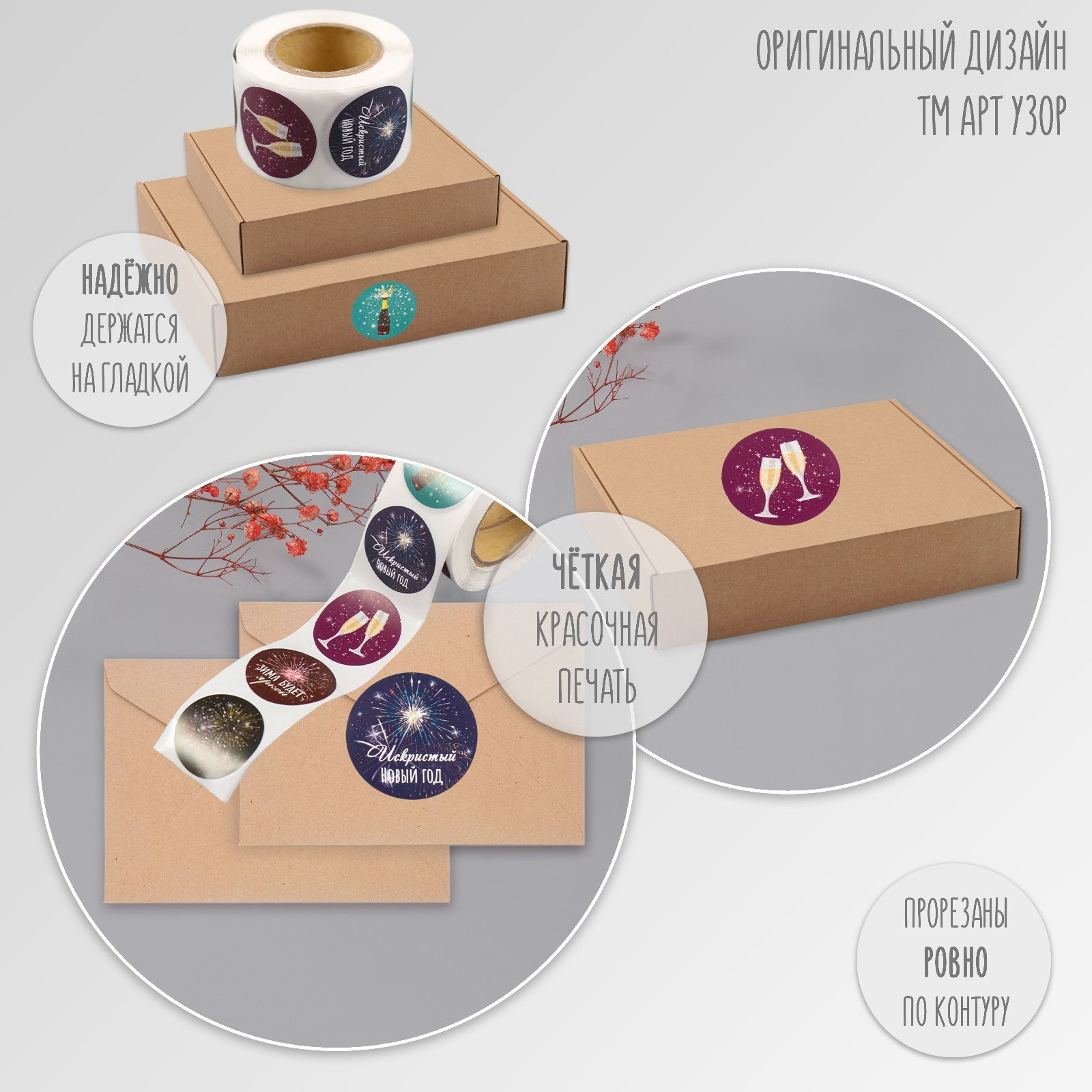 Наклейка бумага "Искристый Новый год", d=2.5 см, 252 шт. в рулоне, Арт Узор, Китай