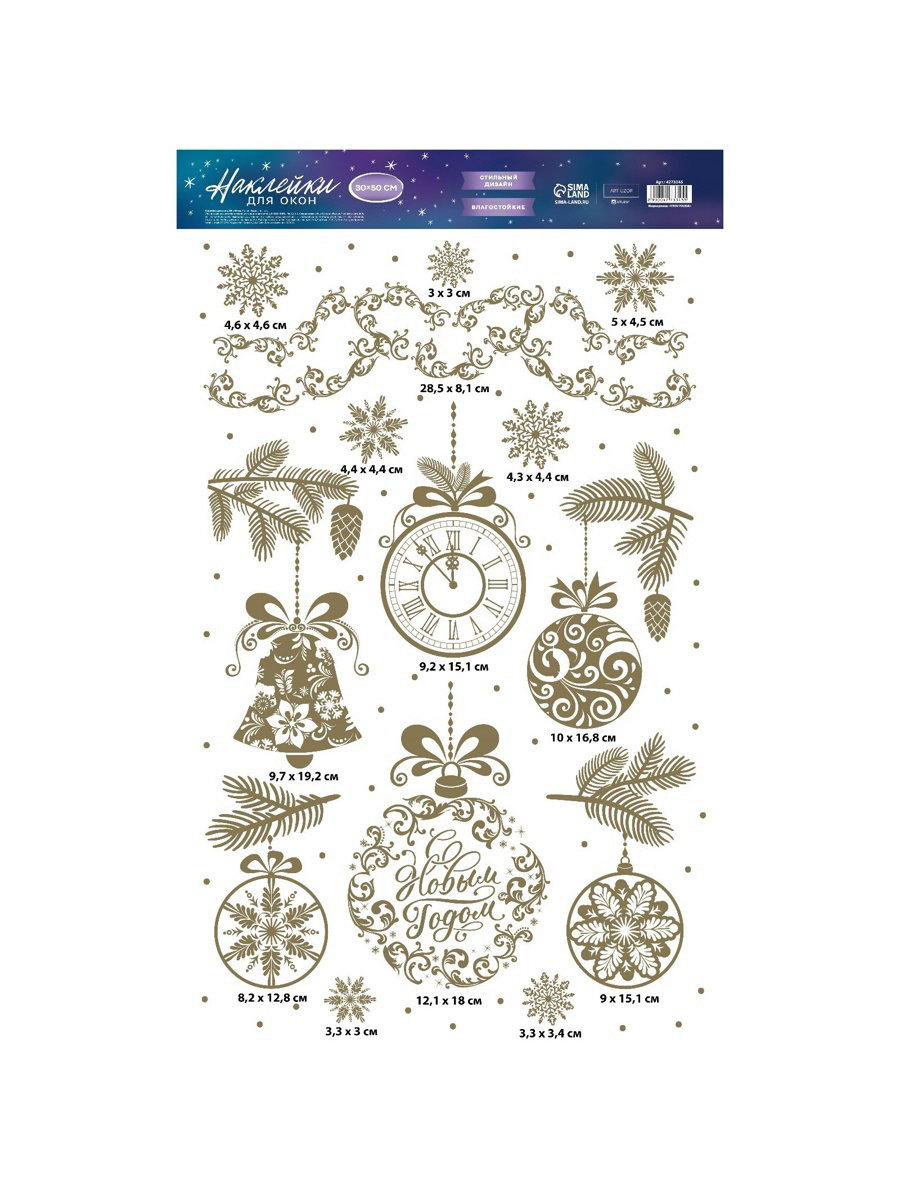 Наклейки новогодние виниловые с фольгированием "C Новым годом", 30 x 50 см, 50x30x0.1 см., Дарите Счастье, Китай