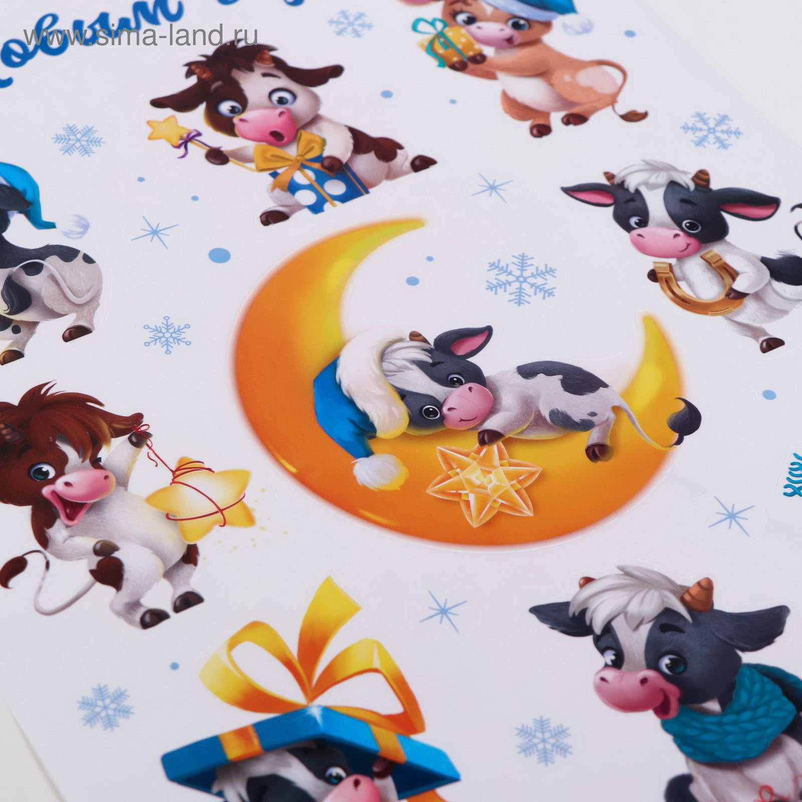 Интерьерные наклейки "Новогодний бычок", 29.7 x 42 см, 0.1x29.7x42 см., Арт Узор, Китай