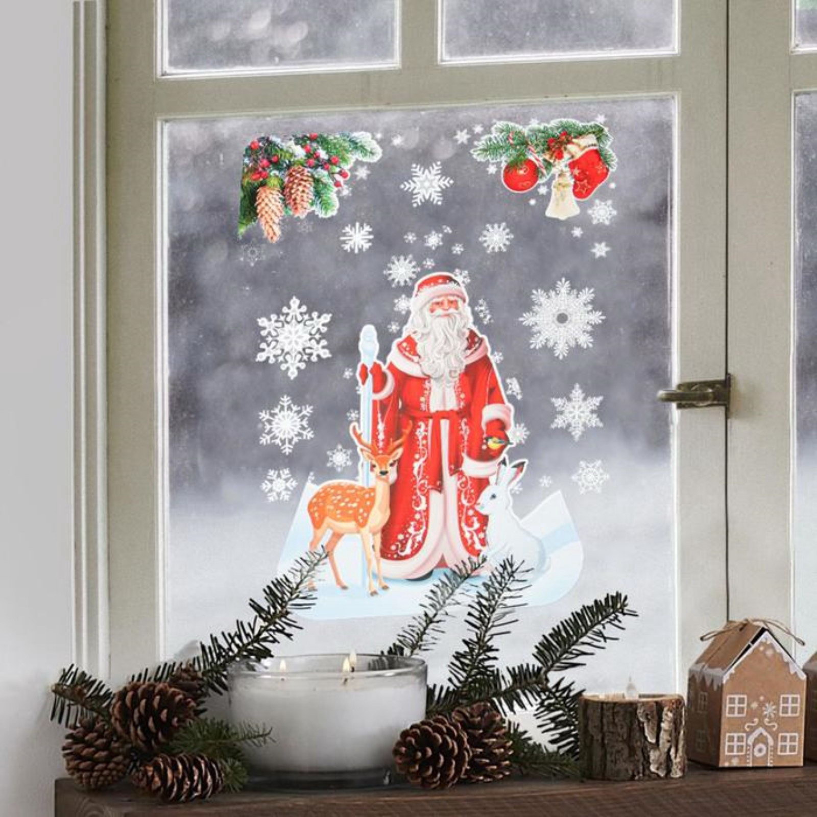 Наклейки новогодние "Дед мороз и снежинки", 40 x 30 см, Дарим Красиво, Россия