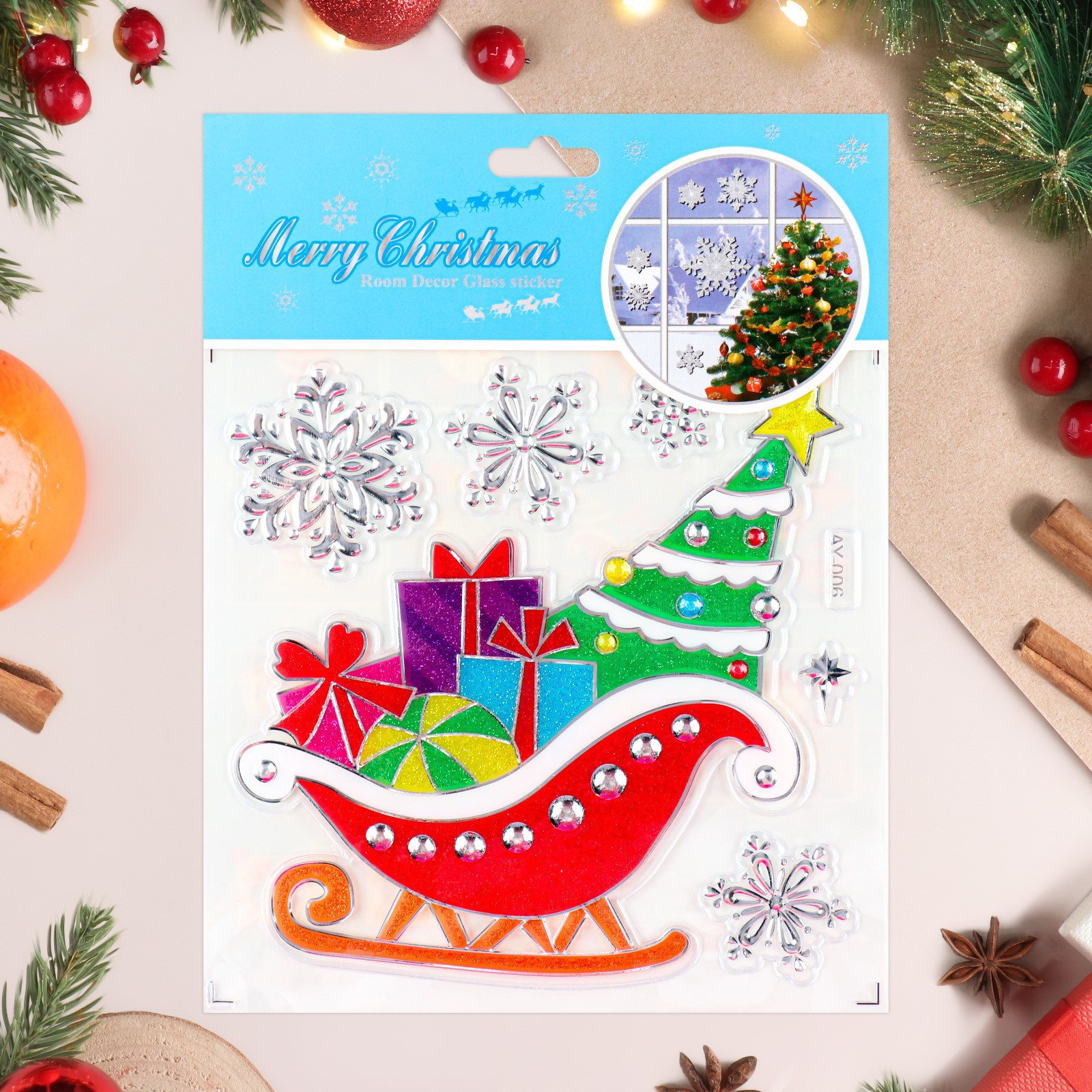 Наклейки на окна "Новогодние" сани с подарками, 21.5 x 16.5 см, Дарим Красиво, Россия