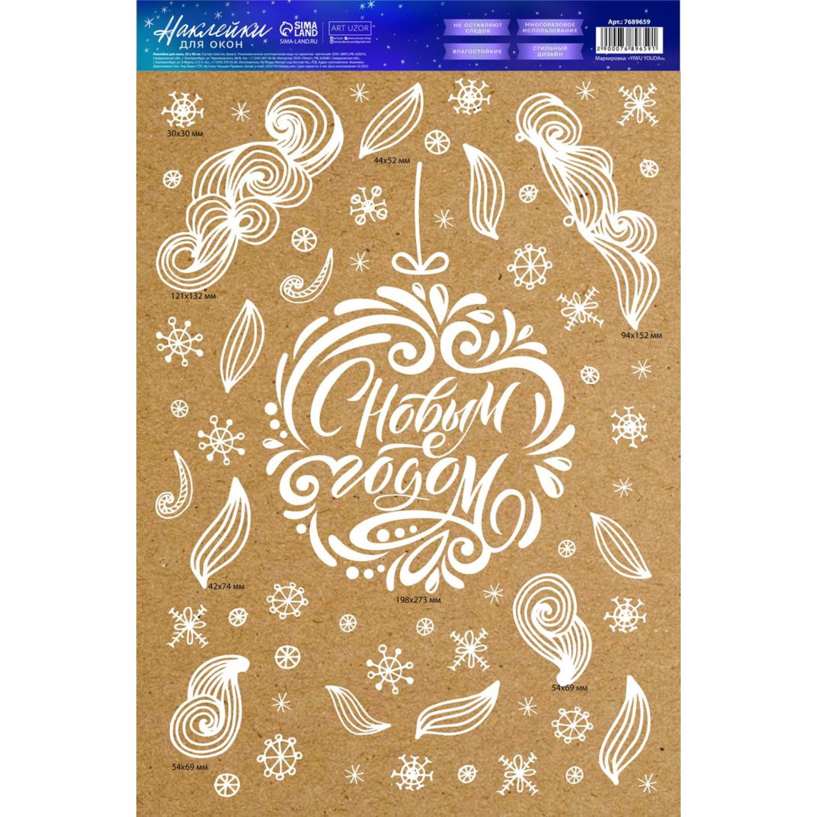 Наклейки новогодние на окна "Зимние узоры", многоразовые, многоразовые, 33 x 50 см, 0.1x33x50 см., Дарите Счастье, Китай