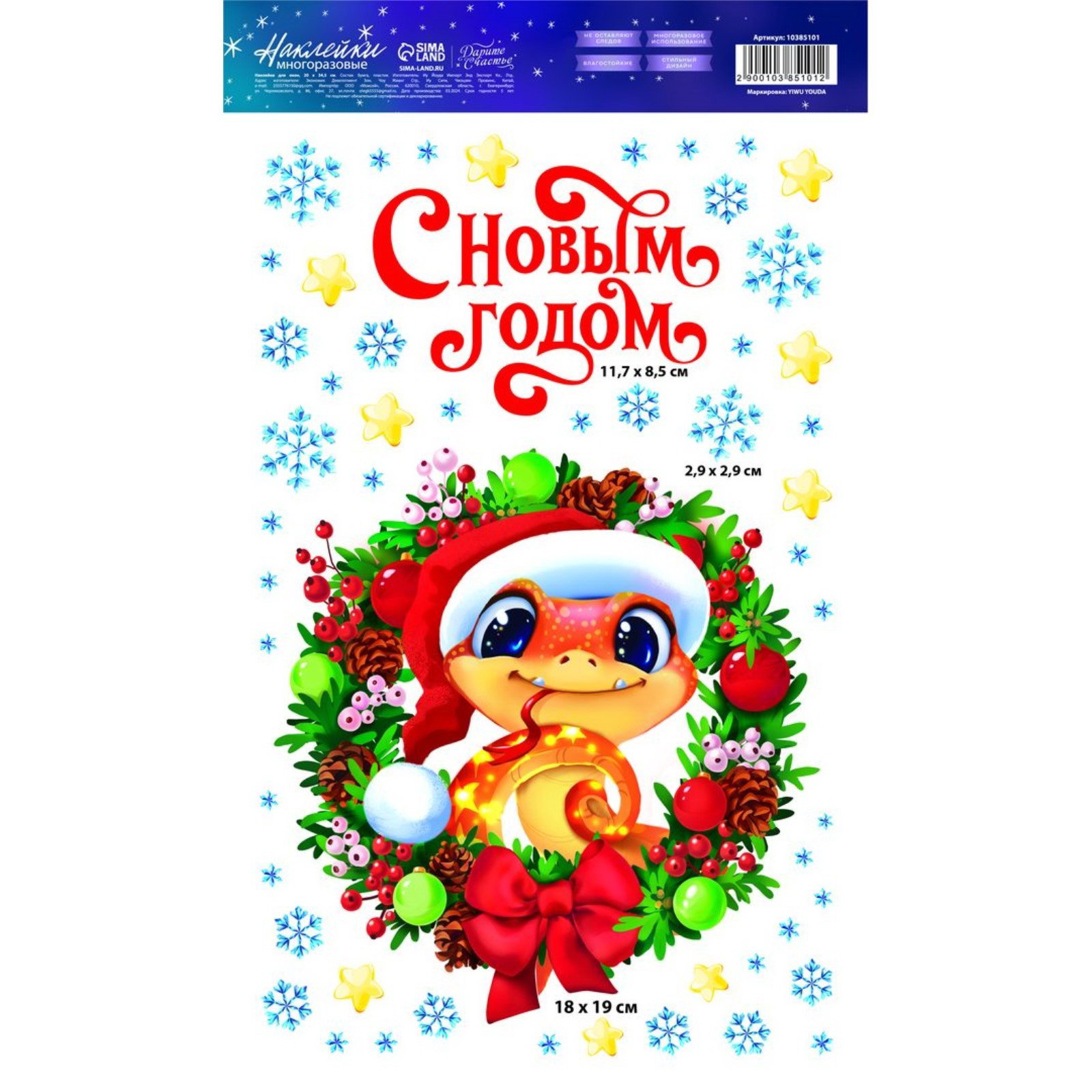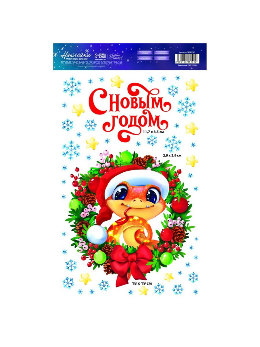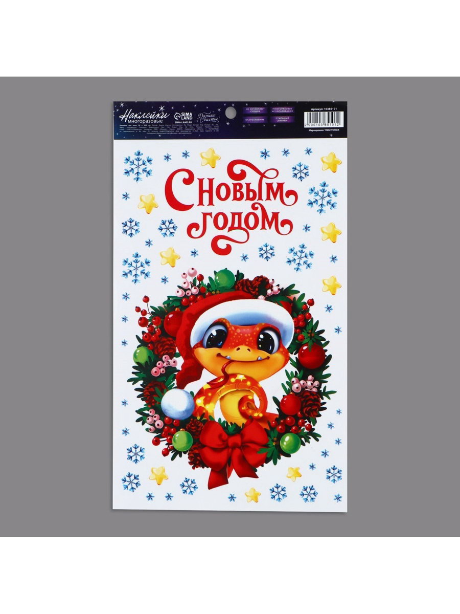 Наклейки новогодние на окна, виниловые "Змея 2025", многоразовые, 20 x 34.5 см, Дарите Счастье, Китай