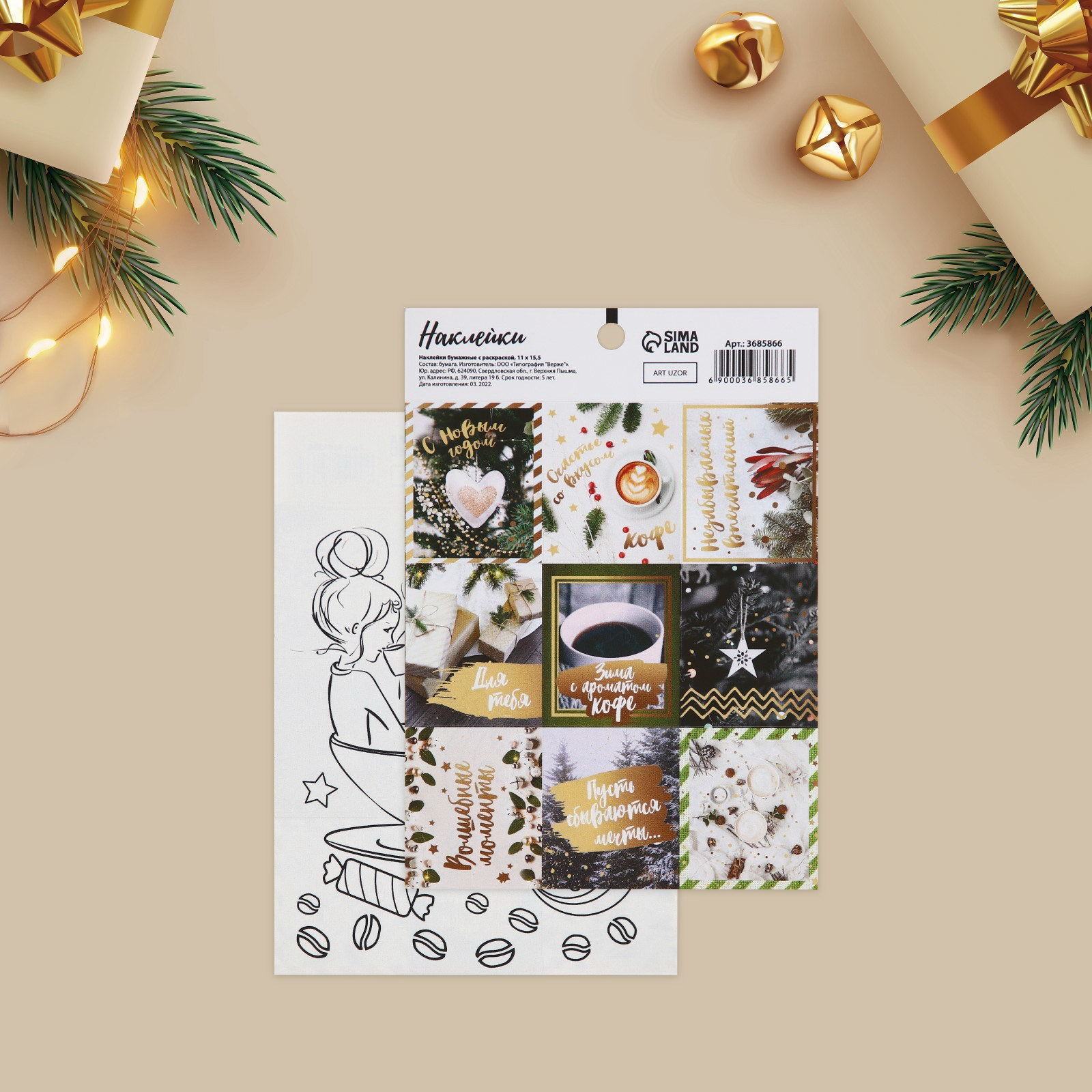 Бумажные наклейки с раскраской на обороте "Со вкусом кофе", 11x15.5 см, Дарите Счастье, Россия