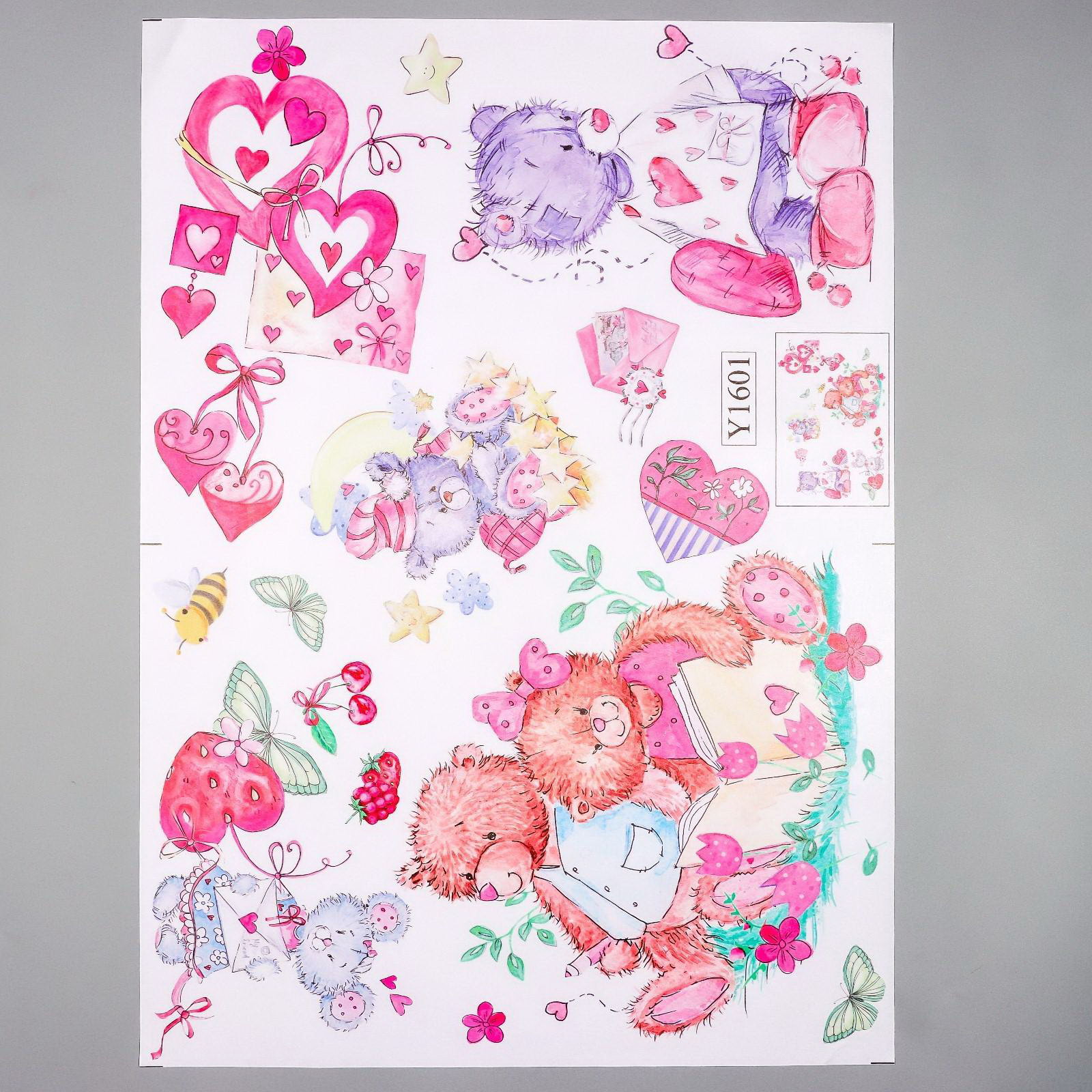 Наклейка пластик интерьерная цветная "Медвежата, любовь" 50х70 см, 70x50 см., Китай