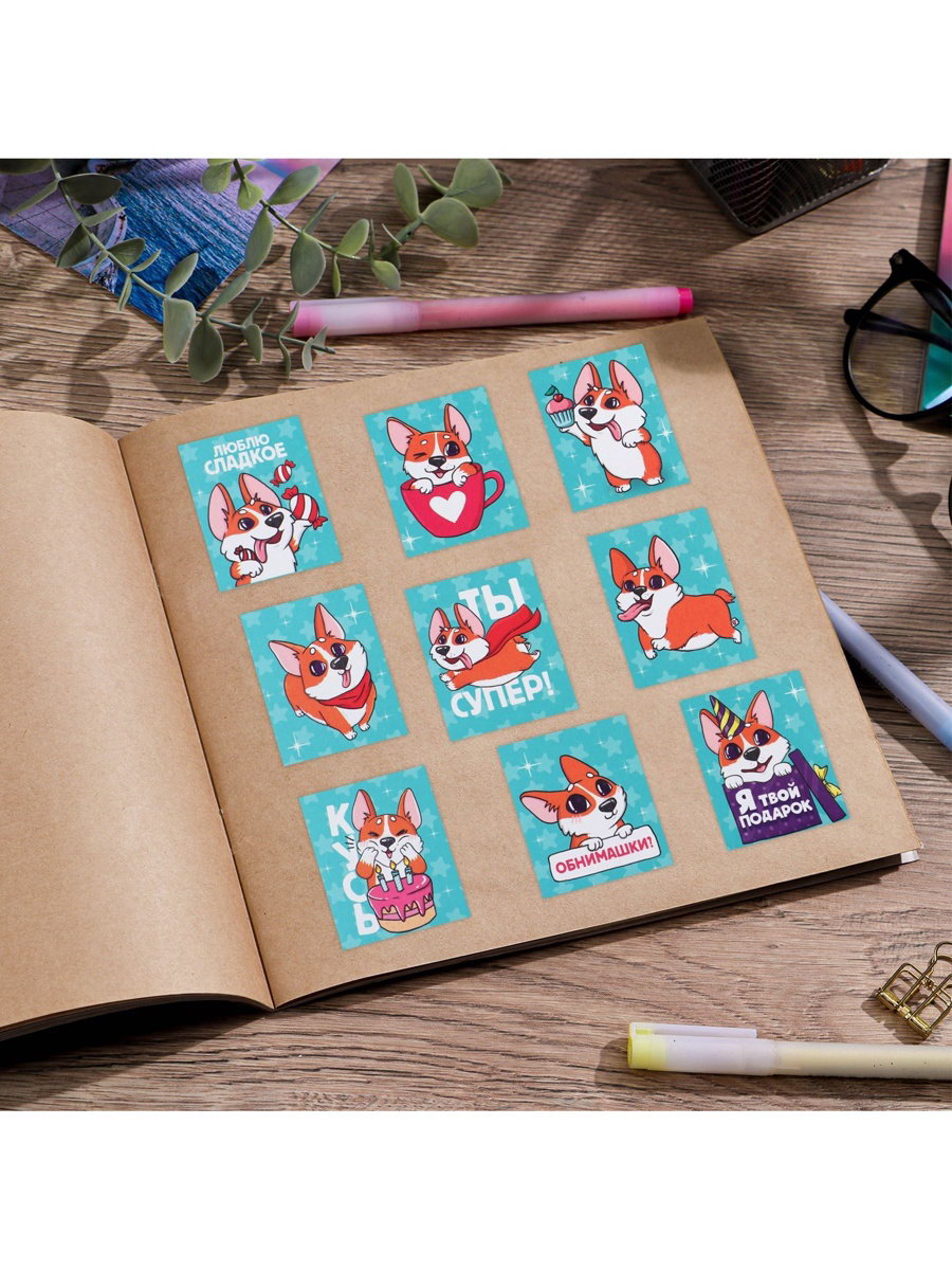 Наклейки детские бумажные "Пёсик корги", 11 x 15.5 см, 15.5x11x0.1 см., Дарите Счастье, Китай