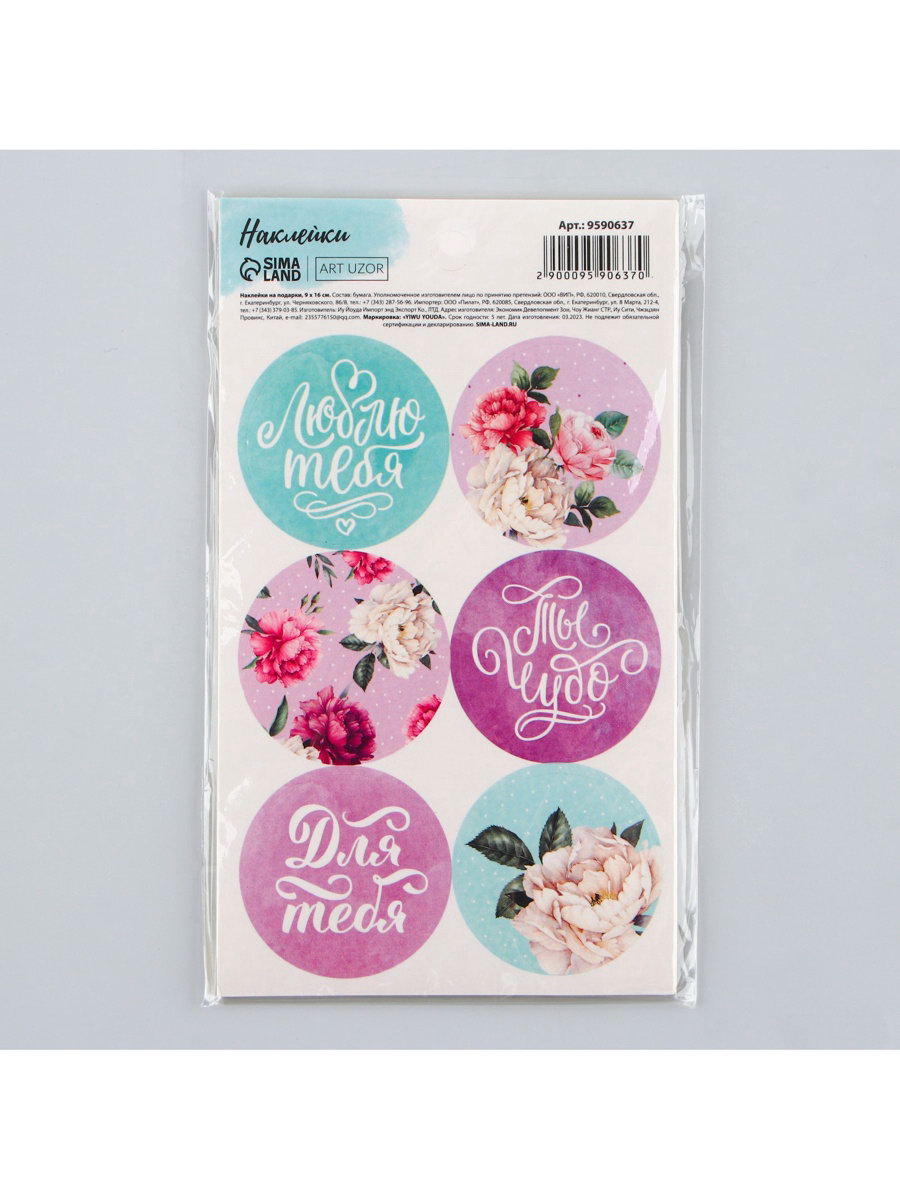 Наклейки для подарков и цветов "Цветочное настроение", 9x16 см, 16x9x0.1 см., Дарите Счастье, Китай