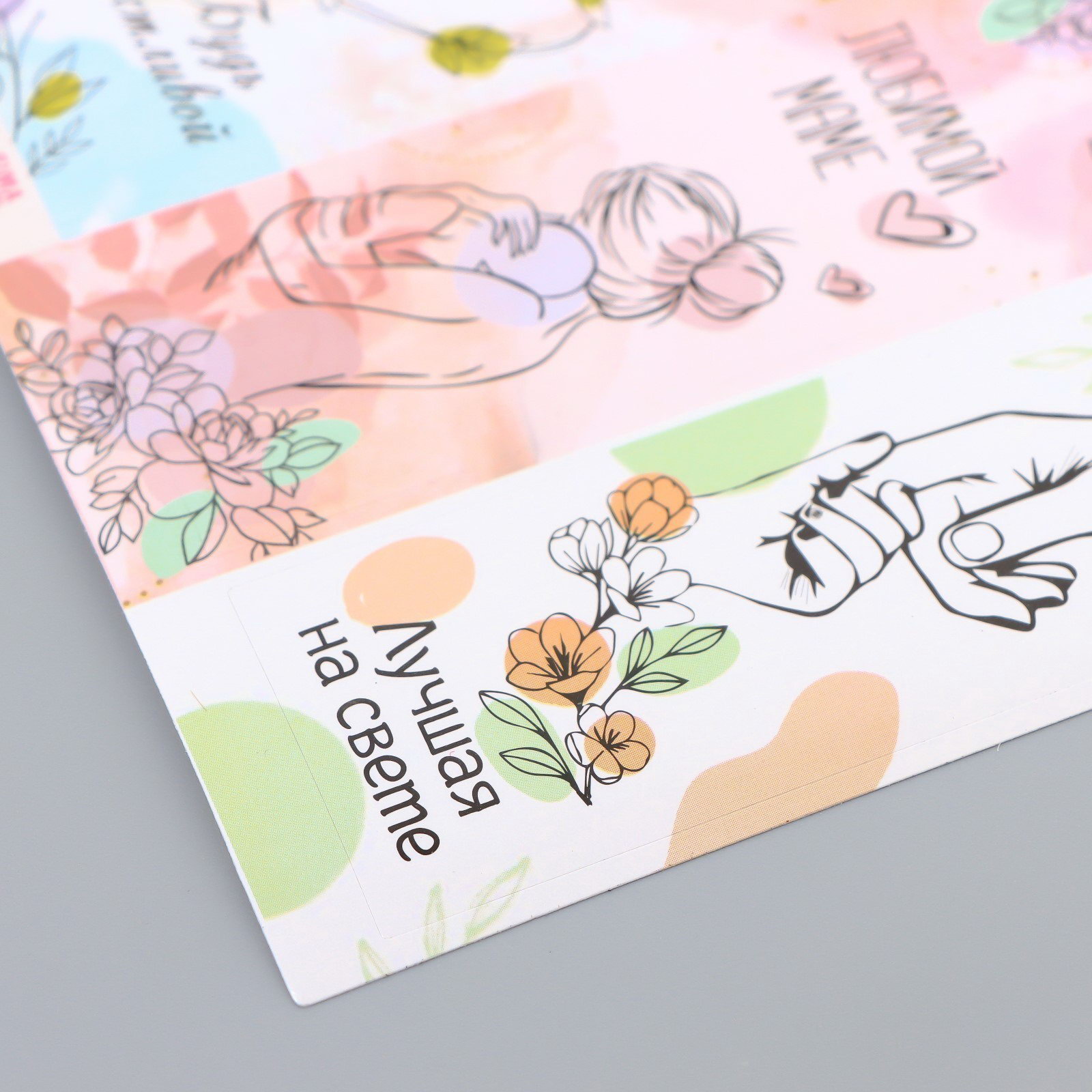 Наклейка бумага "Мамин день" 3х9 см лист 10х10 см, 10x10 см., Арт Узор, Китай