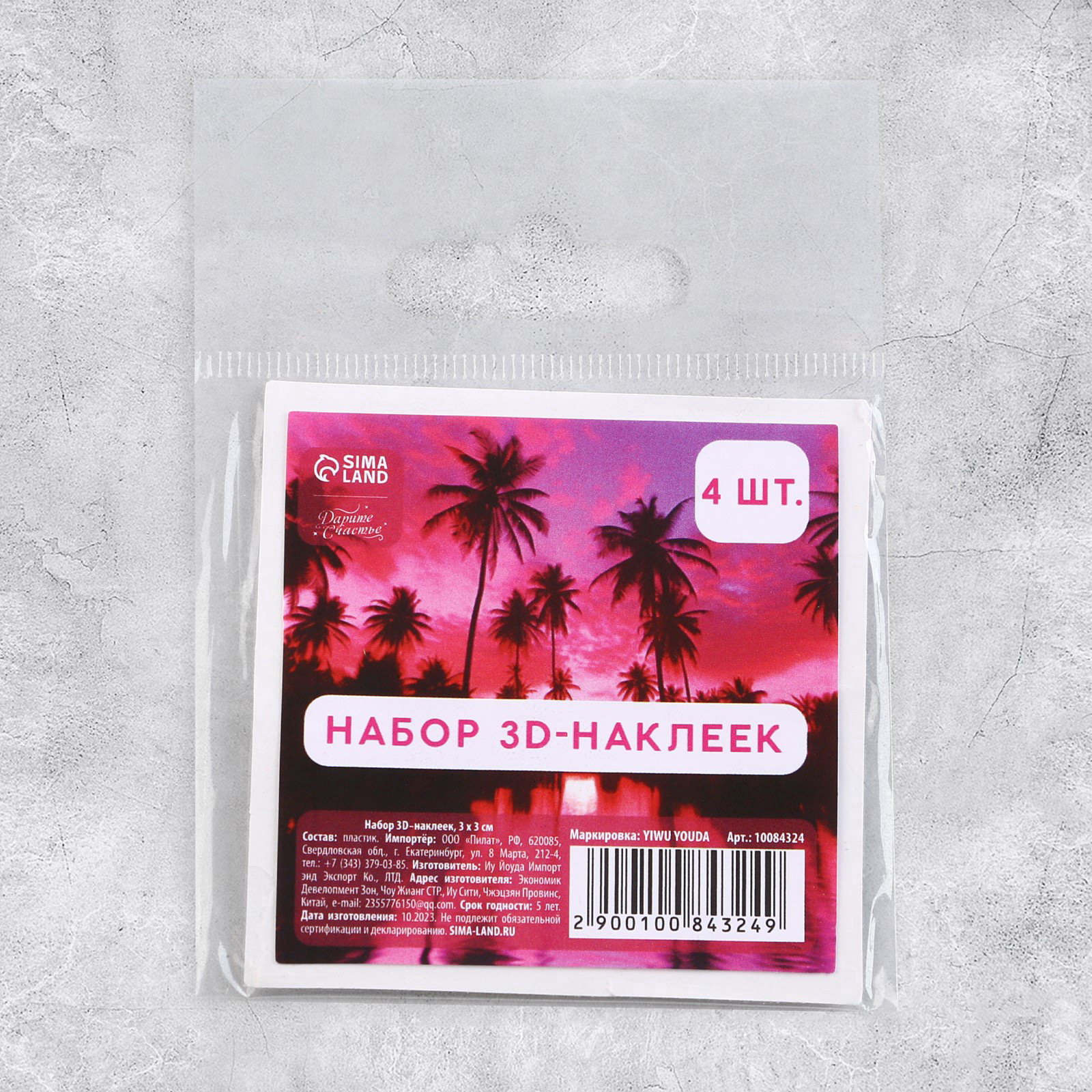 Наклейки-стикеры на телефон, объемные 3D, "Слушай своё сердце", 4 шт, 3 x 3 см, 3x3x0.1 см., Дарите Счастье, Китай