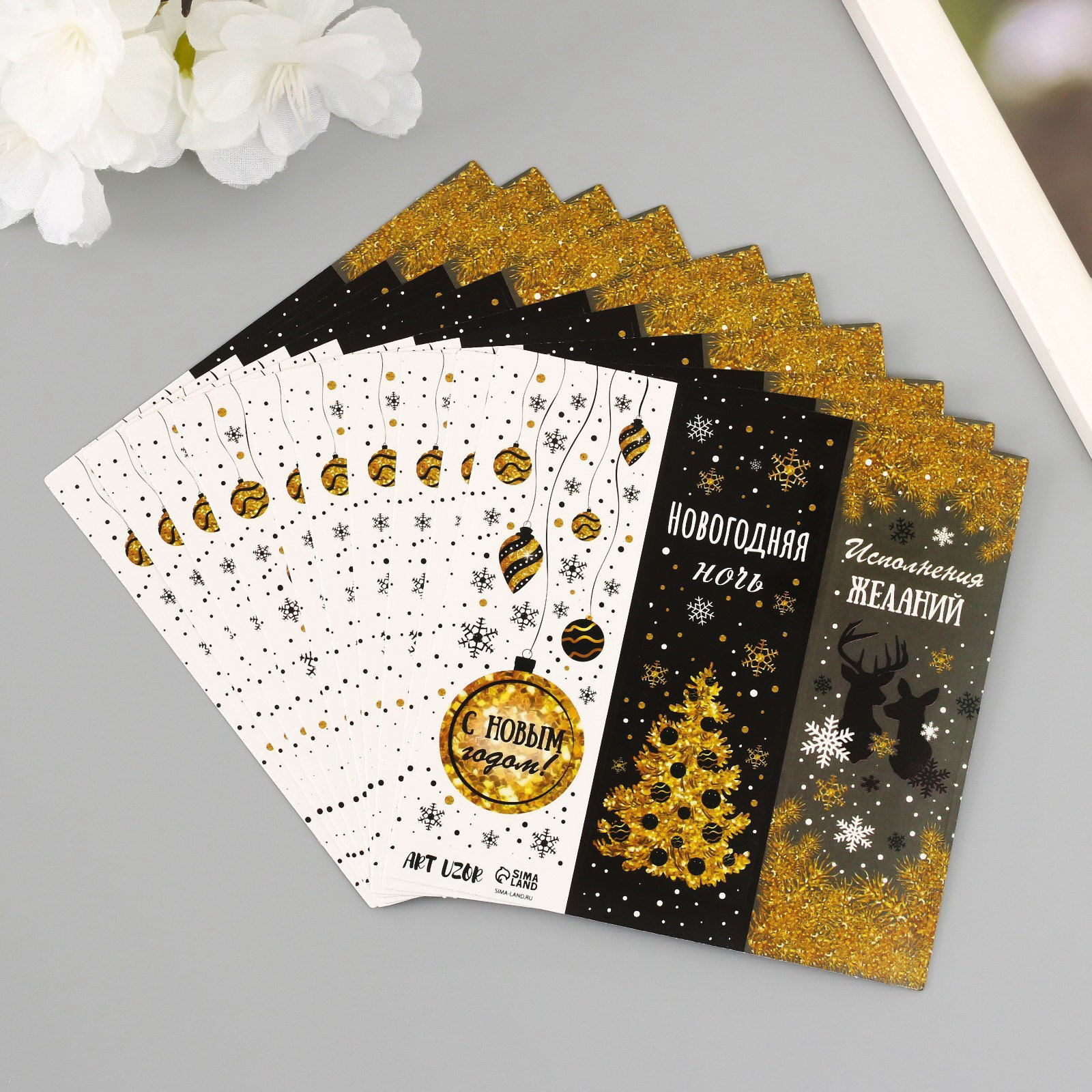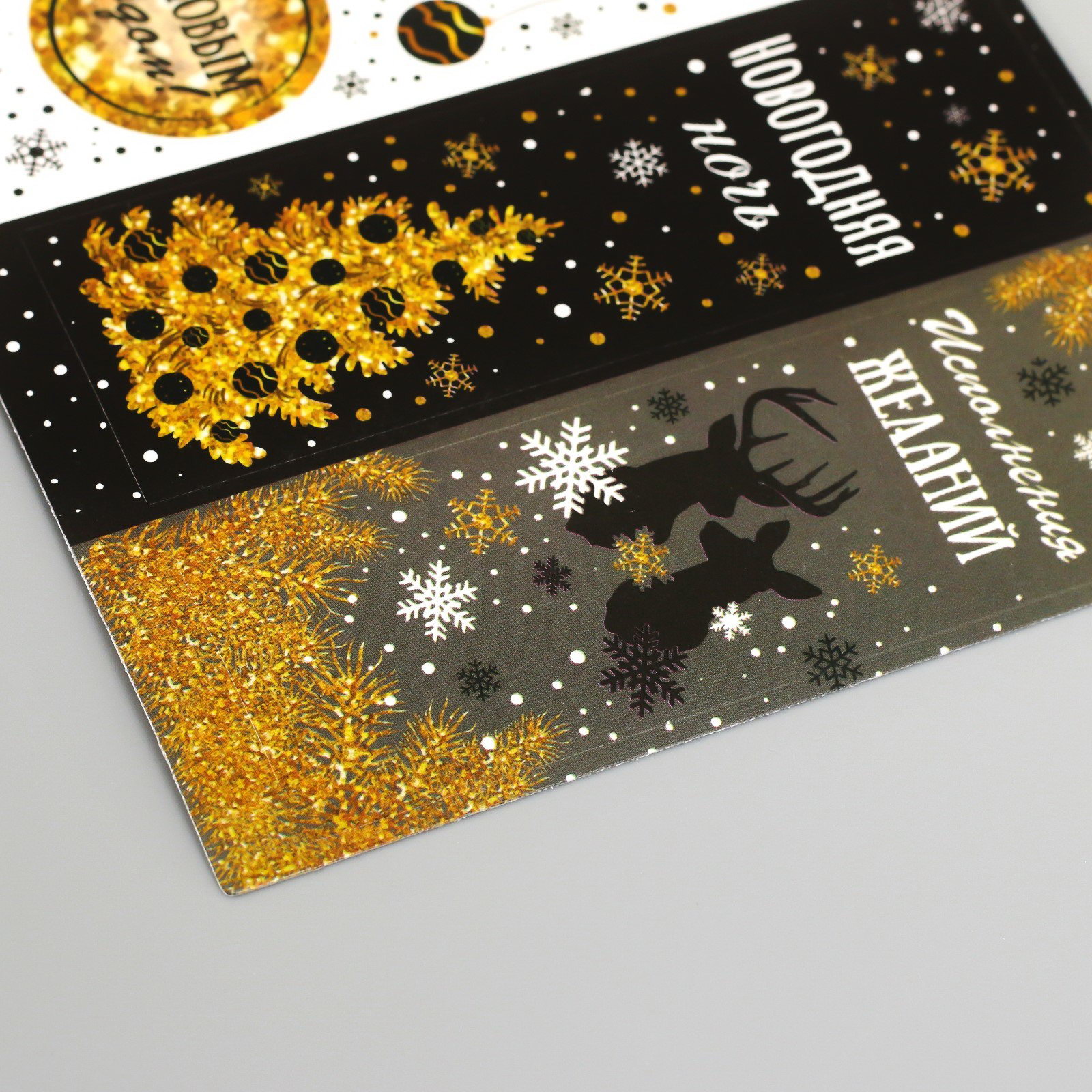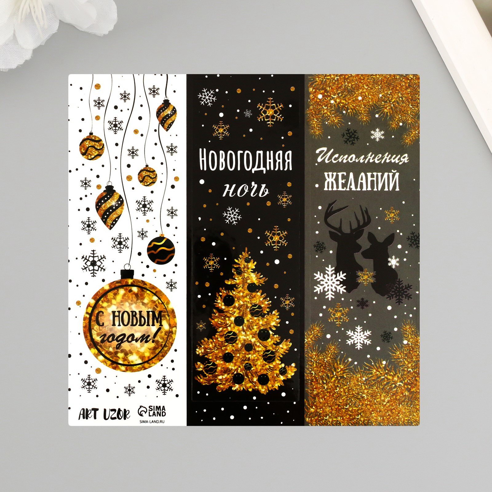 Наклейка бумага "Новогодняя ночь" 3х9 см лист 10х10 см, 10x10 см., Арт Узор, Китай
