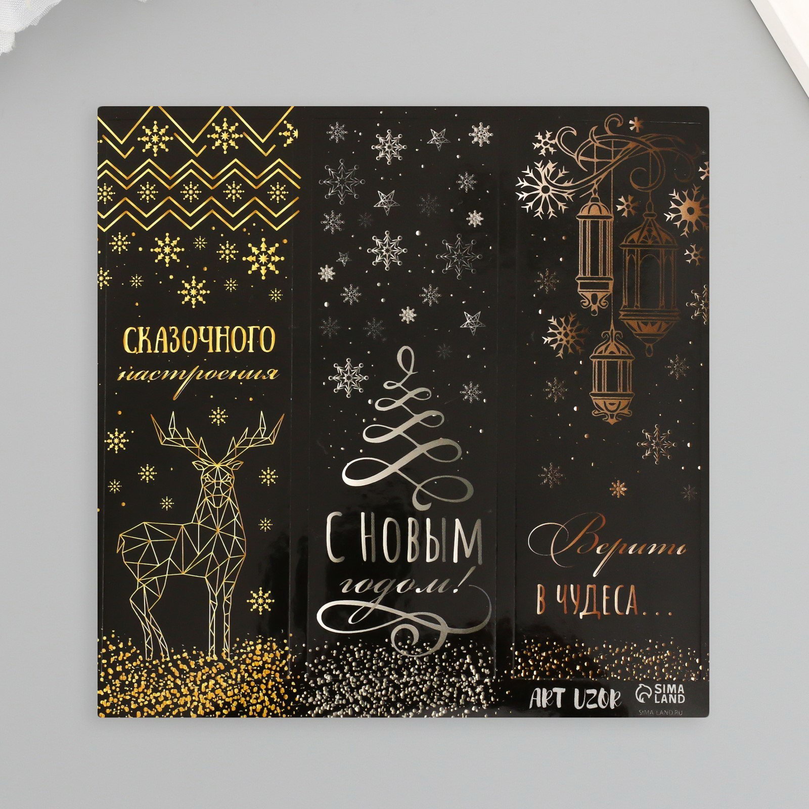 Наклейка бумага "Новогодние фонарики" 3х9 см лист 10х10 см, 10x10 см., Арт Узор, Китай