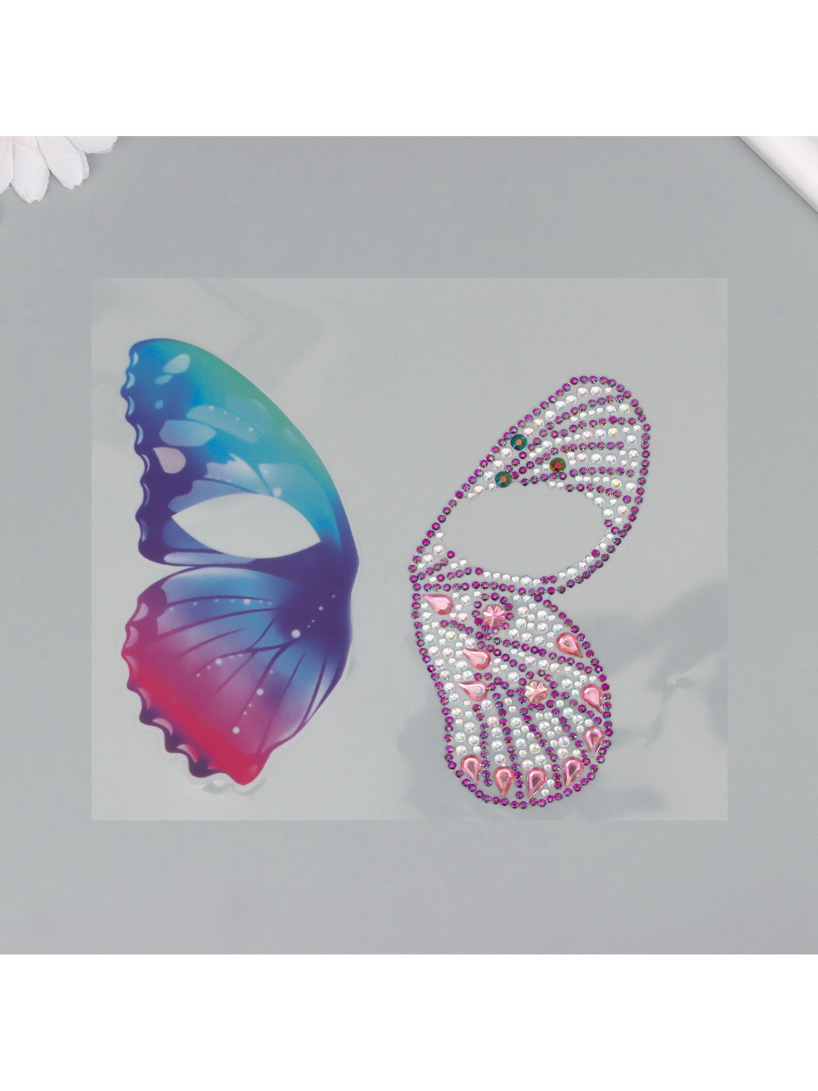 Наклейка - стразы на лицо "Пара крыльев розовой бабочки", 16x17 см, Арт Узор, Китай