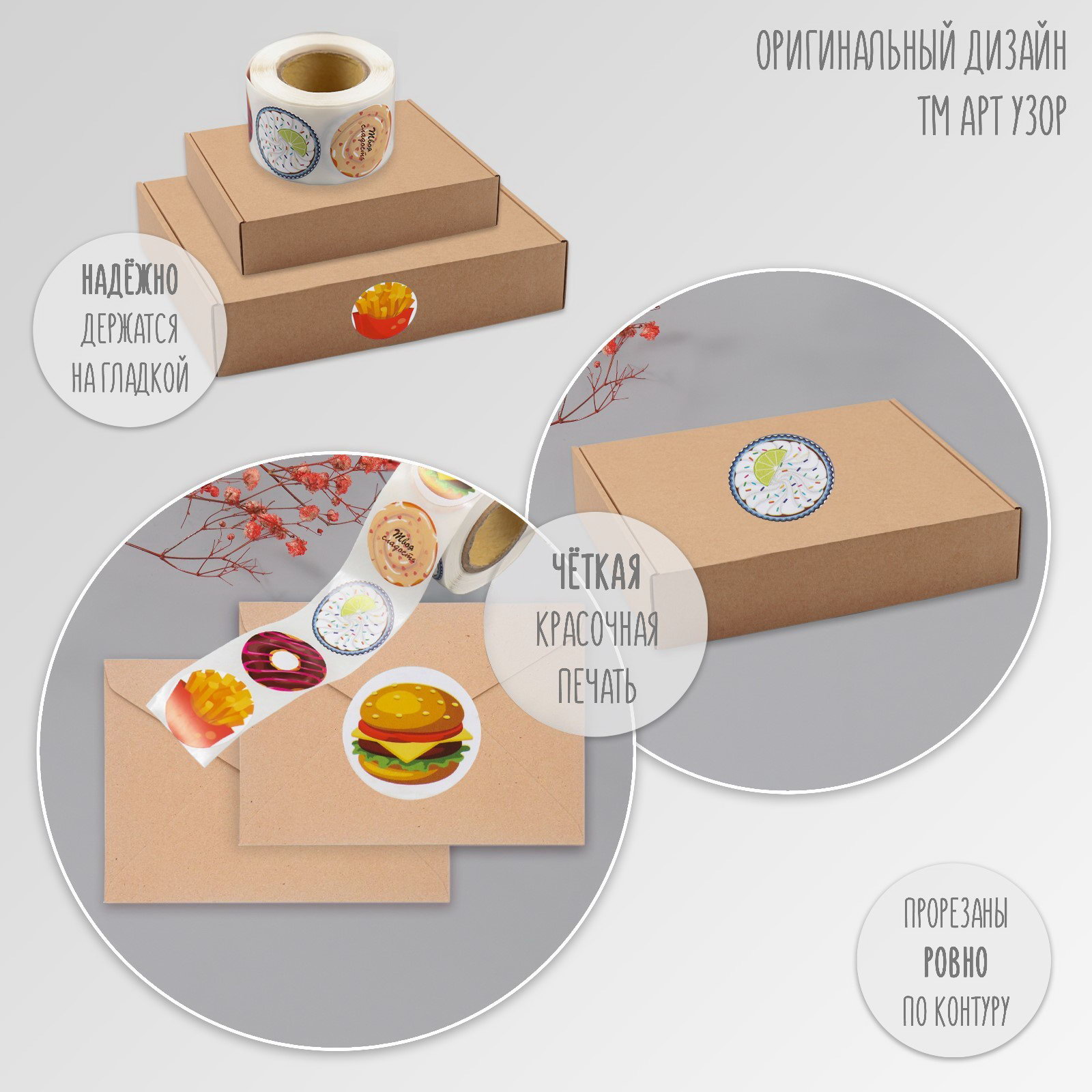 Наклейка бумага "Вкусности", d=2.5 см, 252 шт. в рулоне, Арт Узор, Китай