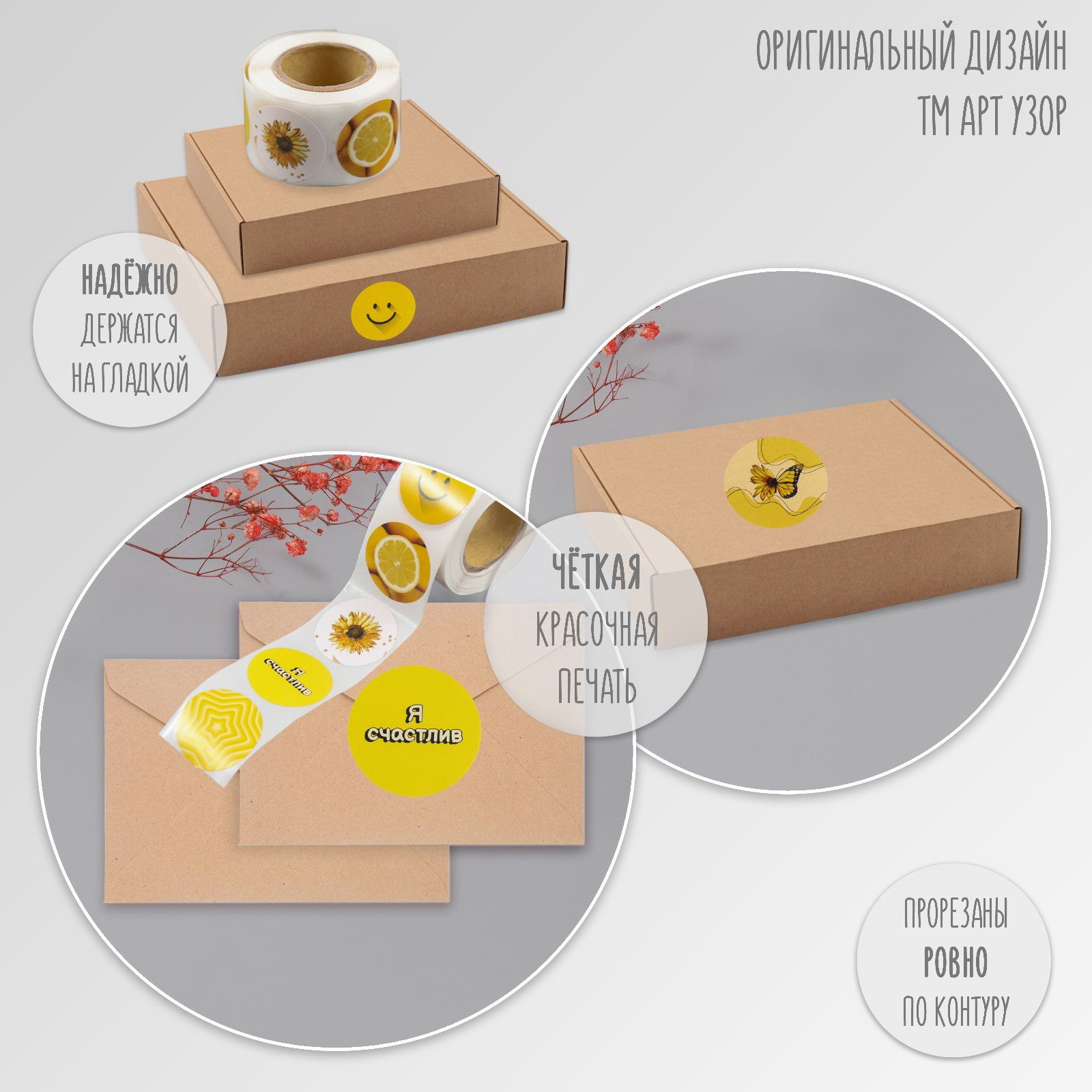 Наклейка бумага "Жёлтые", d=2.5 см, 252 шт. в рулоне, Арт Узор, Китай