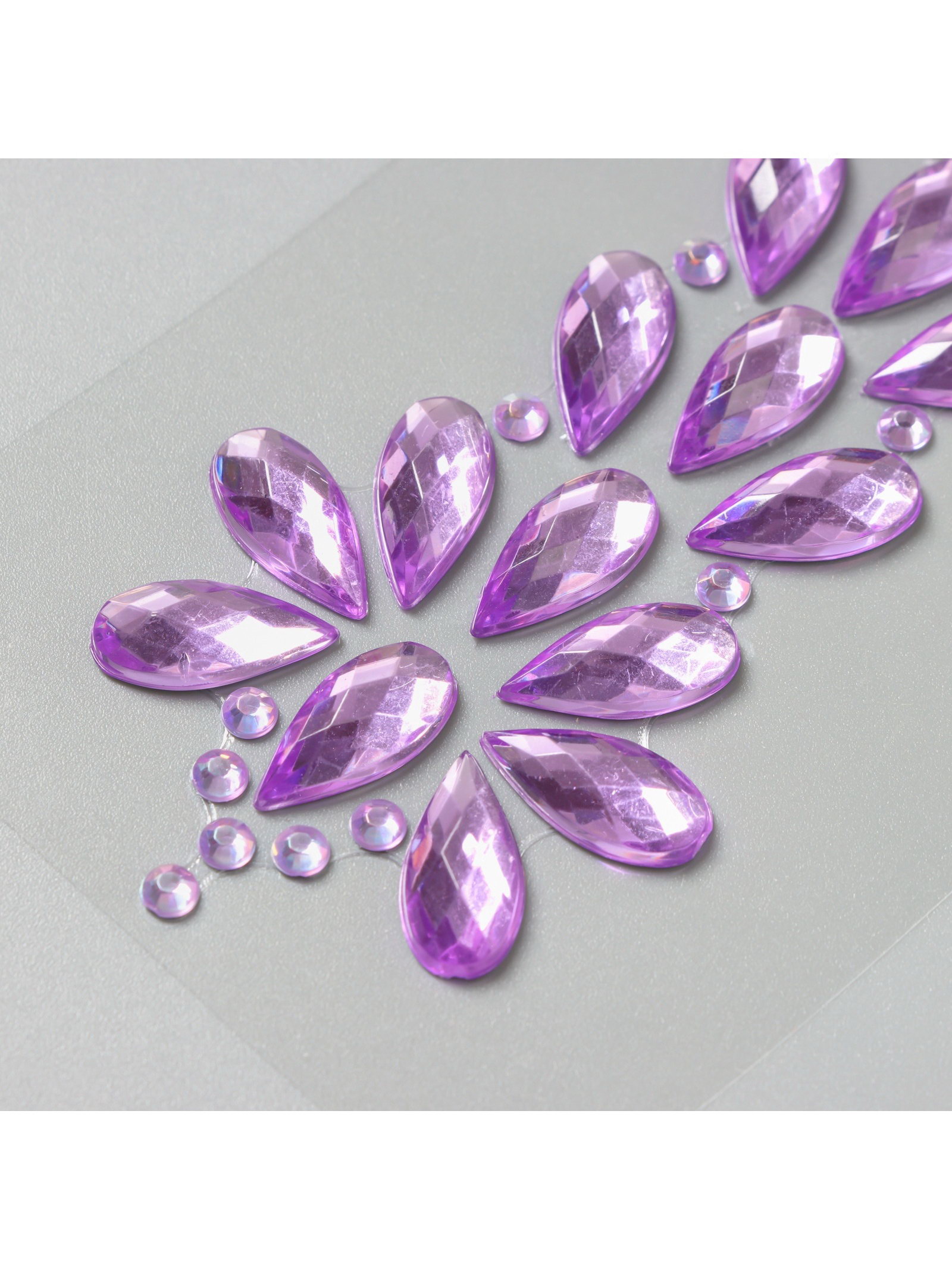 Наклейка - стразы "Фонтан", на шею, спину, сиреневая, 25x8.5 см, 8.5x25 см., Арт Узор, Китай