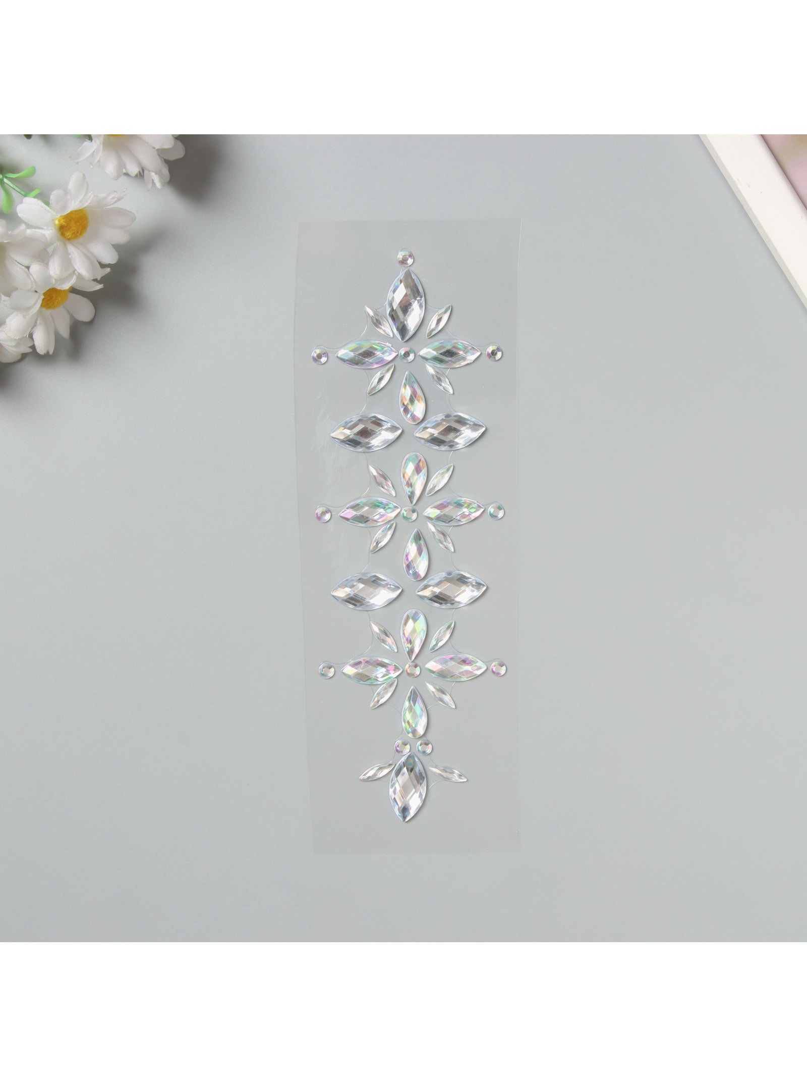 Наклейка - стразы "Цветы", на шею, спину, серебро, 25x8.5 см, 8.5x25 см., Арт Узор, Китай