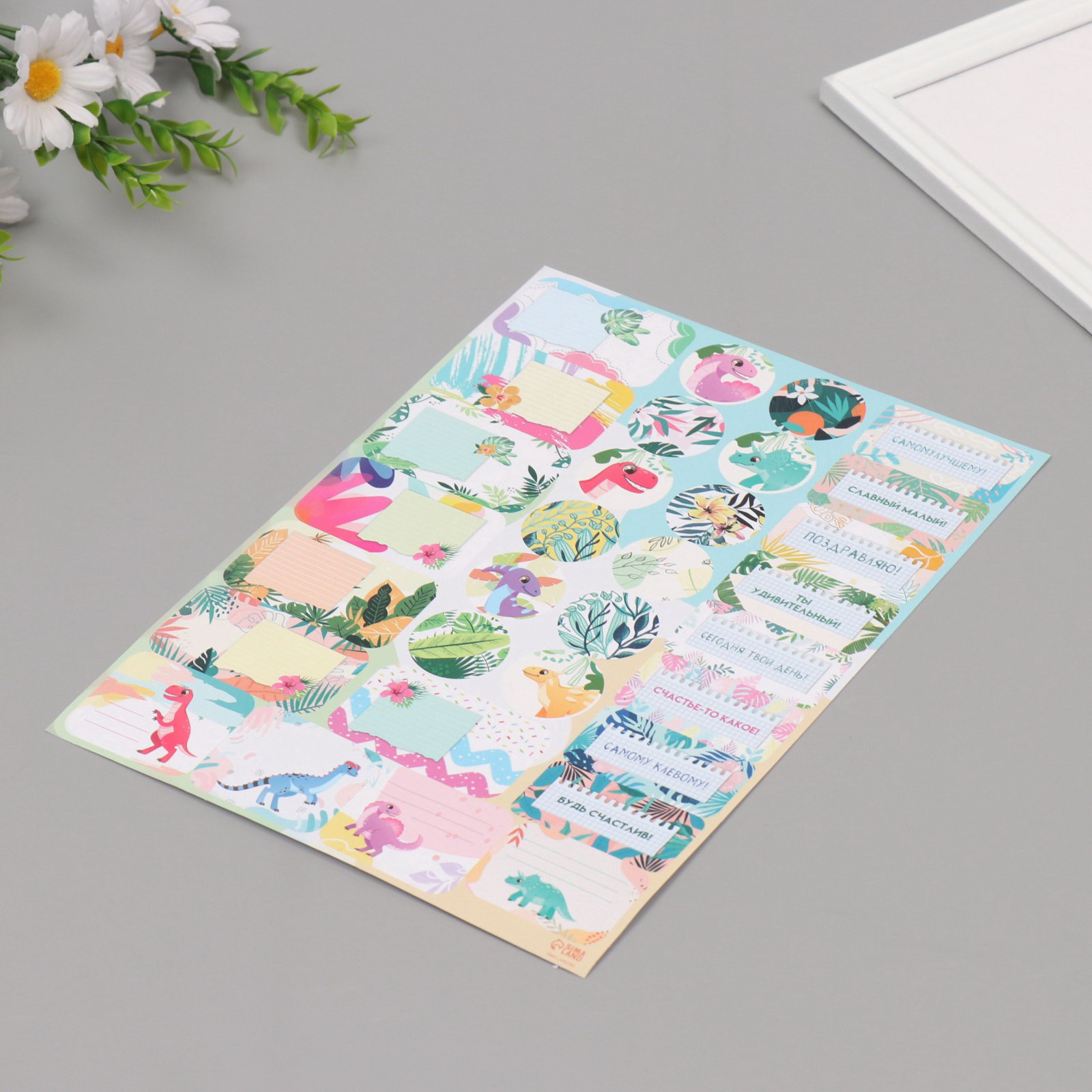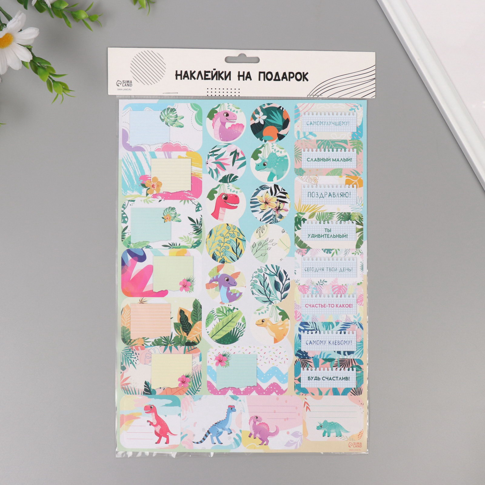 Наклейки на подарки "Динозаврики", 21x29.7 см, 21x29.7 см., Арт Узор, Китай